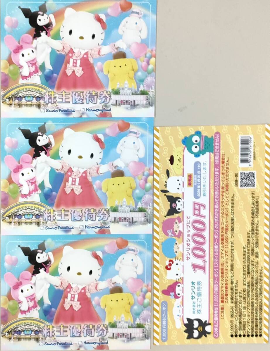 サンリオピューロランド優待券3枚+株主優待券(1000円割引券)☆有効期限 2026年1月31日