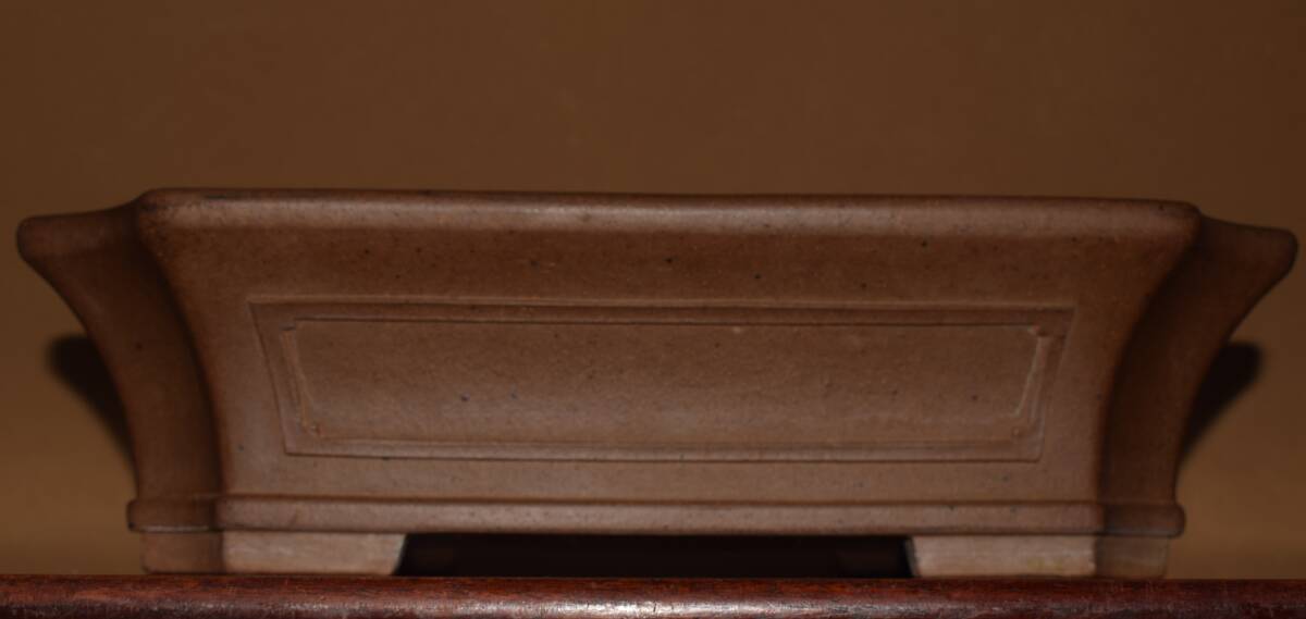 Product name: 人気和鉢作家<小松泉焼・紫泥・手造り・釘彫落款★時代乗り抜群★大き目サイズ・大人気型> 外縁大隅切額入長方鉢・間口43,0cm
