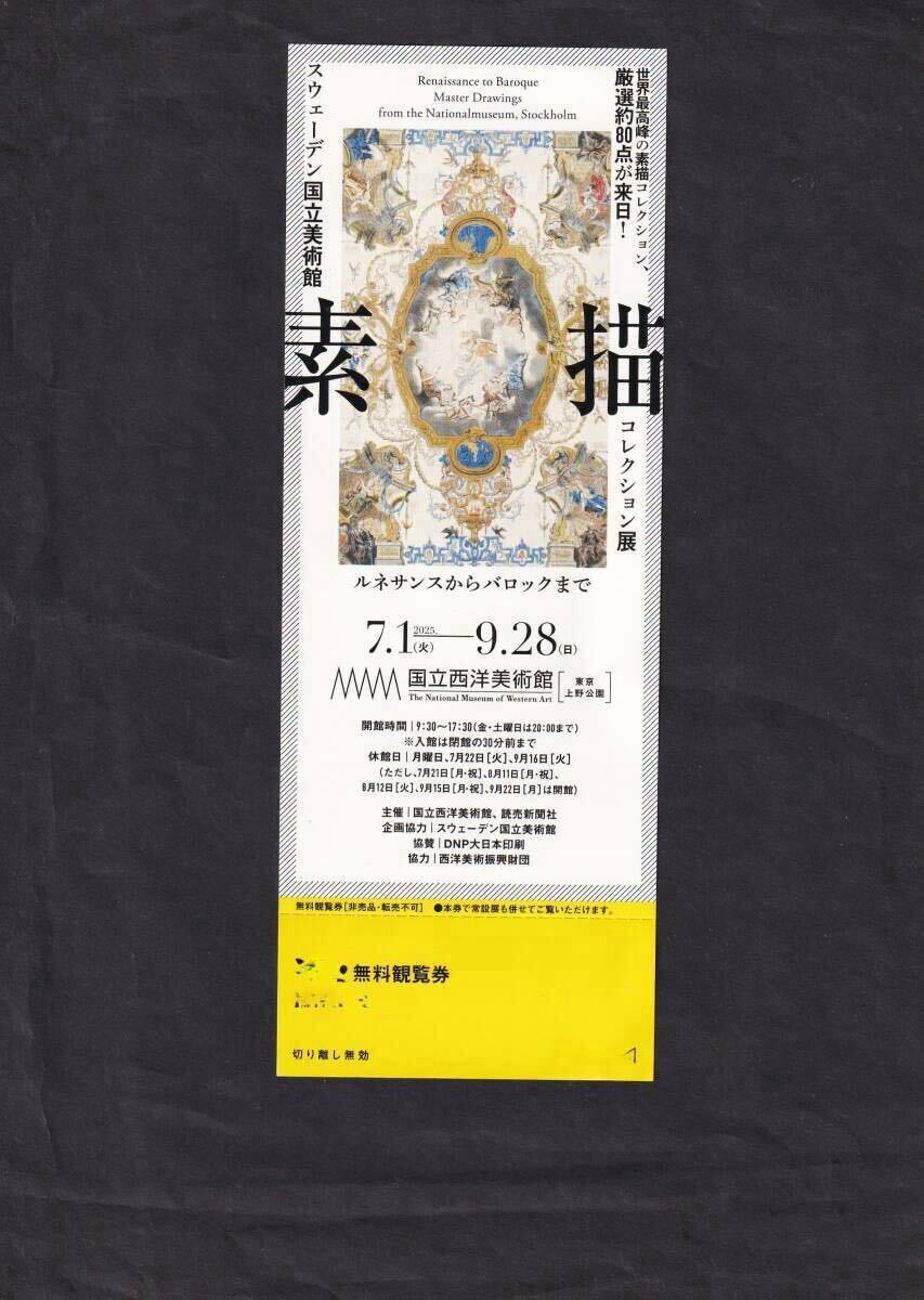 普通郵便送料無料!!国立西洋美術館 素描 チケット『素描 展 スウェーデン国立美術館 展』1~9枚