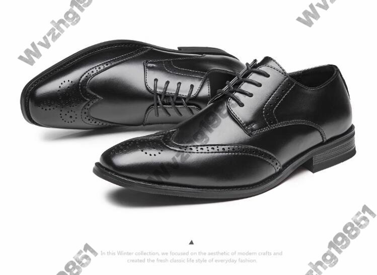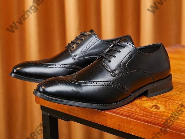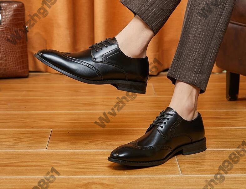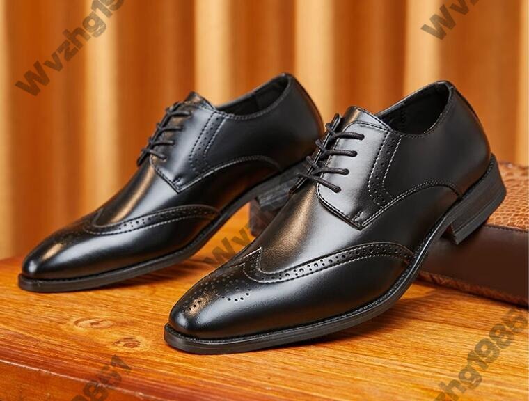 英倫靴男性尖頭系本革ビジネス正装靴ブラウン婚靴青年靴