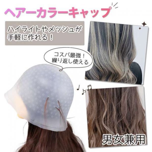 ハイライトやメッシュを狙った部分だけカラーリングできる、シリコン製のヘアキャップです。シリコン素材なので、繰り返し使えて経済的。