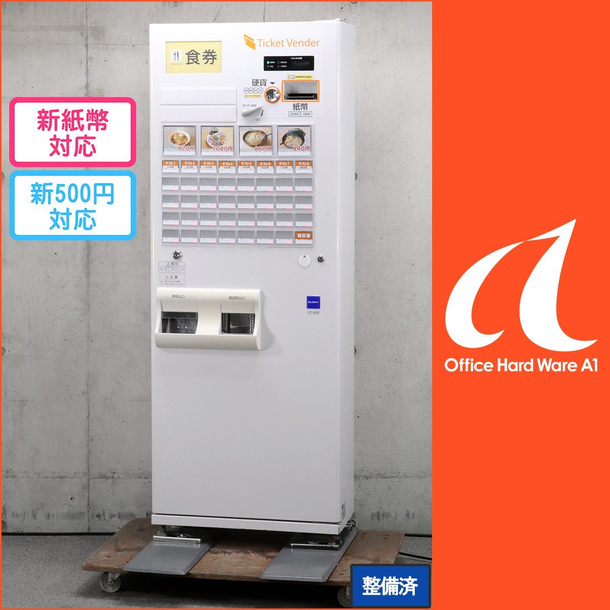 新500円/新紙幣対応済☆ 自動券売機 グローリー VT-B20 大型ボタン4個 44口座 取扱説明書付 整備済【中古 GLORY 券売機 新札対応】#I