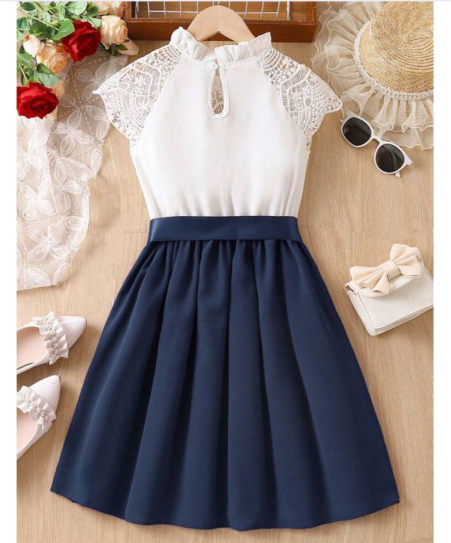 150 ワンピース ネイビー 紺 半袖 女の子 フォーマル 結婚式 発表会