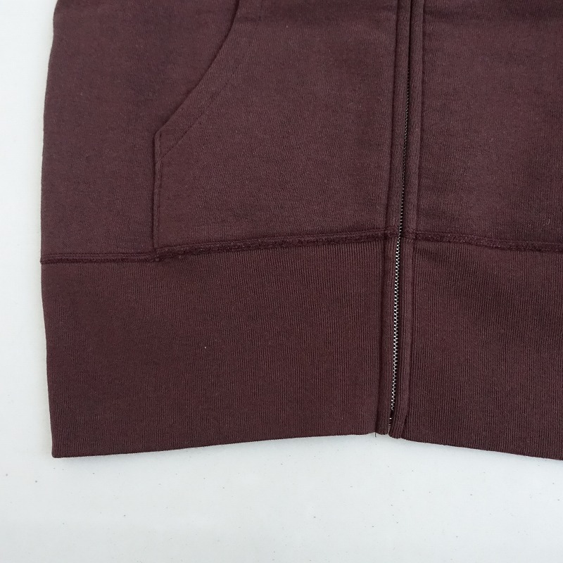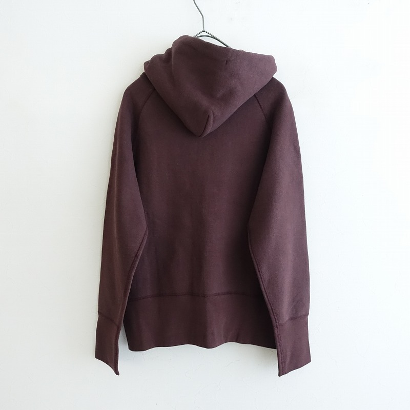 DRESSTERIORのデキシー吊裏毛ジップアップパーカーです。カラーはチョコブラウンです。ふっくらとしたコットンの、裏起毛の暖かなスウェット生地を使用。袋縫い仕立てのフードはドローストリング仕様です。ラグランスリーブ仕様。リブ素材の袖口と裾は少し長めのデザインです。前両腰にポケットがございます。定価(メーカー希望小売価格)19,800円の商品です。