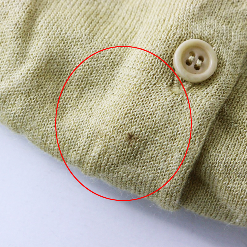 全体的に毛羽立ちがあり、脇に摩耗が見受けられます裾にシミ汚れがございます