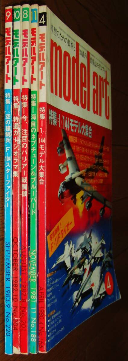 古雑誌、モデルアート、1980年4月号、1981年11月号、1982年8、10月号、1983年9月号の計5冊セットで。