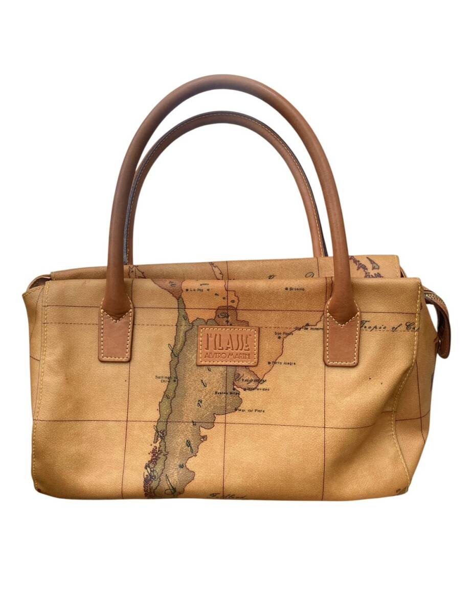 Product name: (M) プリマクラッセ ハンドバッグ PRIMA CLASSE 地図柄 ブラウン PVC×レザー レディース 1円~
