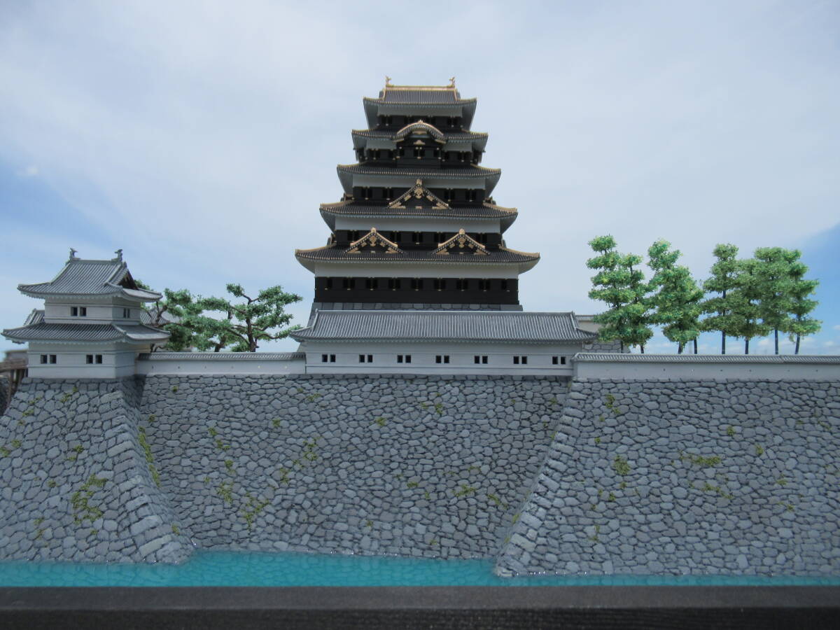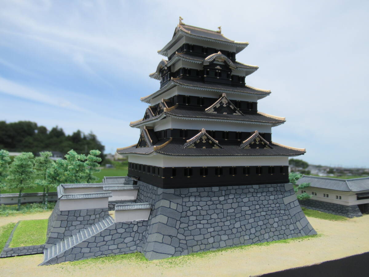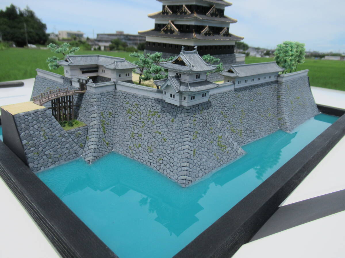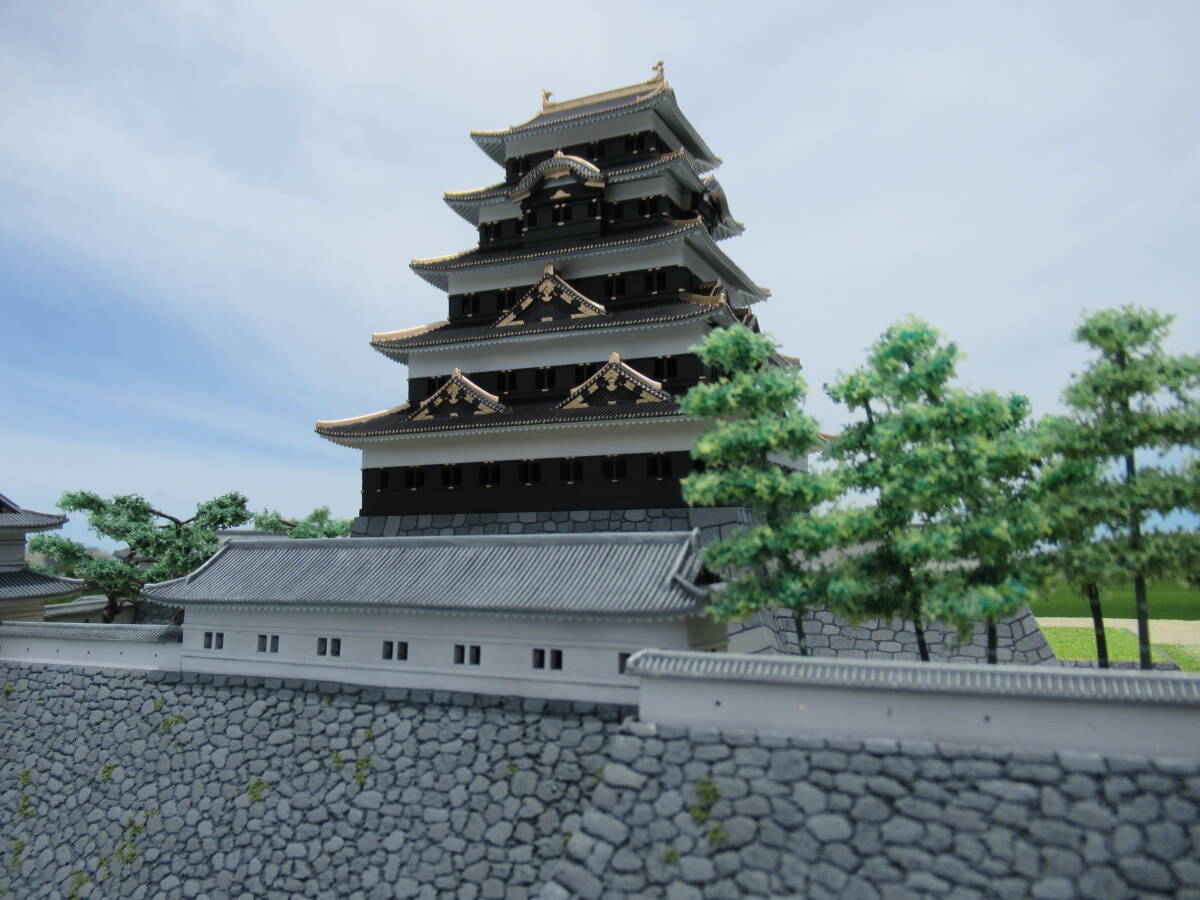 ・本丸の石垣の高さを約2cm増して高石垣の雰囲気が出るようにしました。石垣表面はスチレンボードに手彫りです。天守台石垣はキットのままです。
