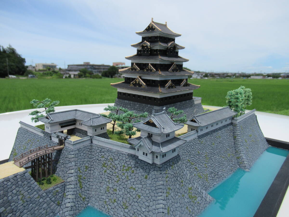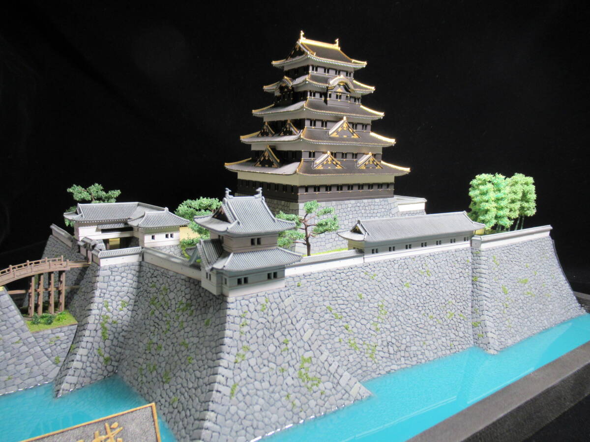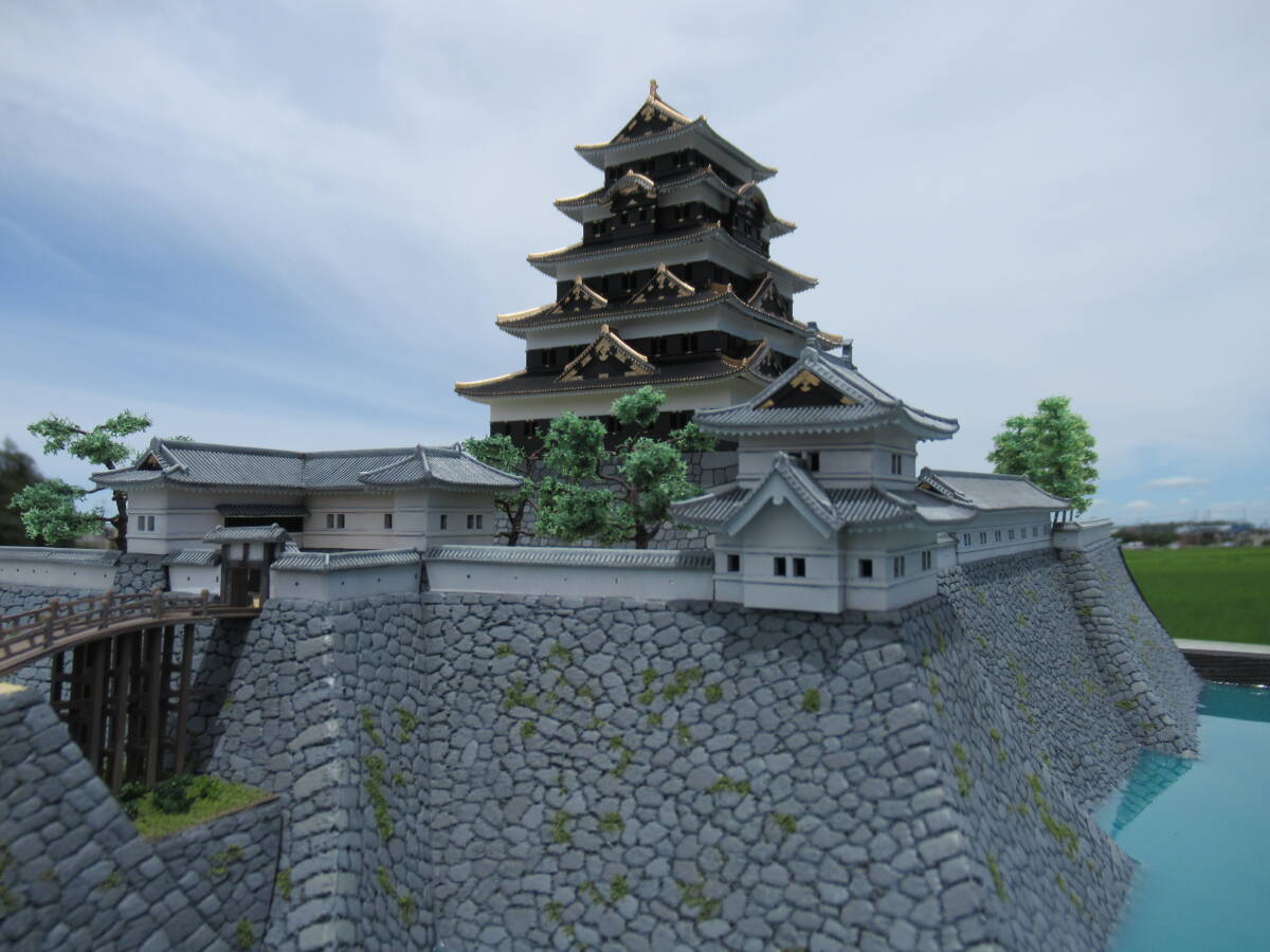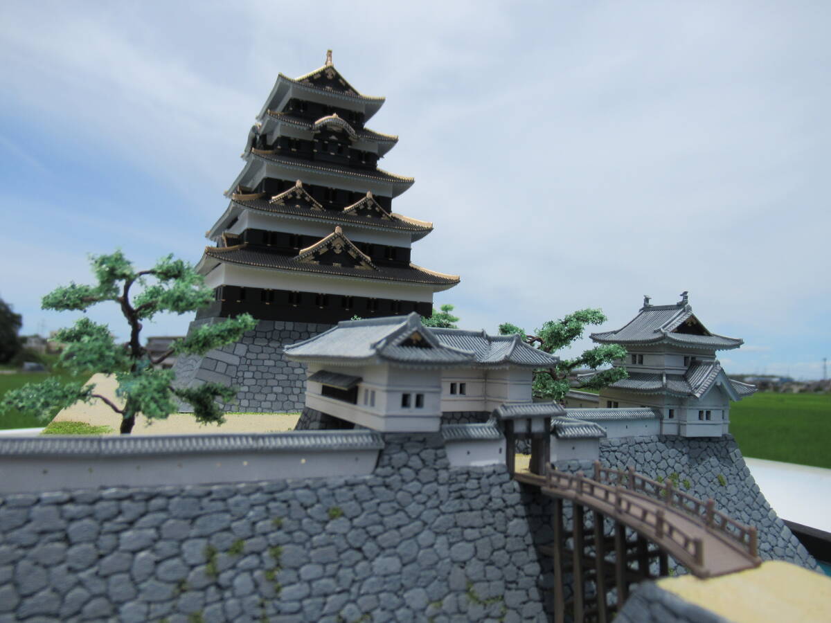 ・本丸の石垣の高さを約2cm増して高石垣の雰囲気が出るようにしました。石垣表面はスチレンボードに手彫りです。天守台石垣はキットのままです。