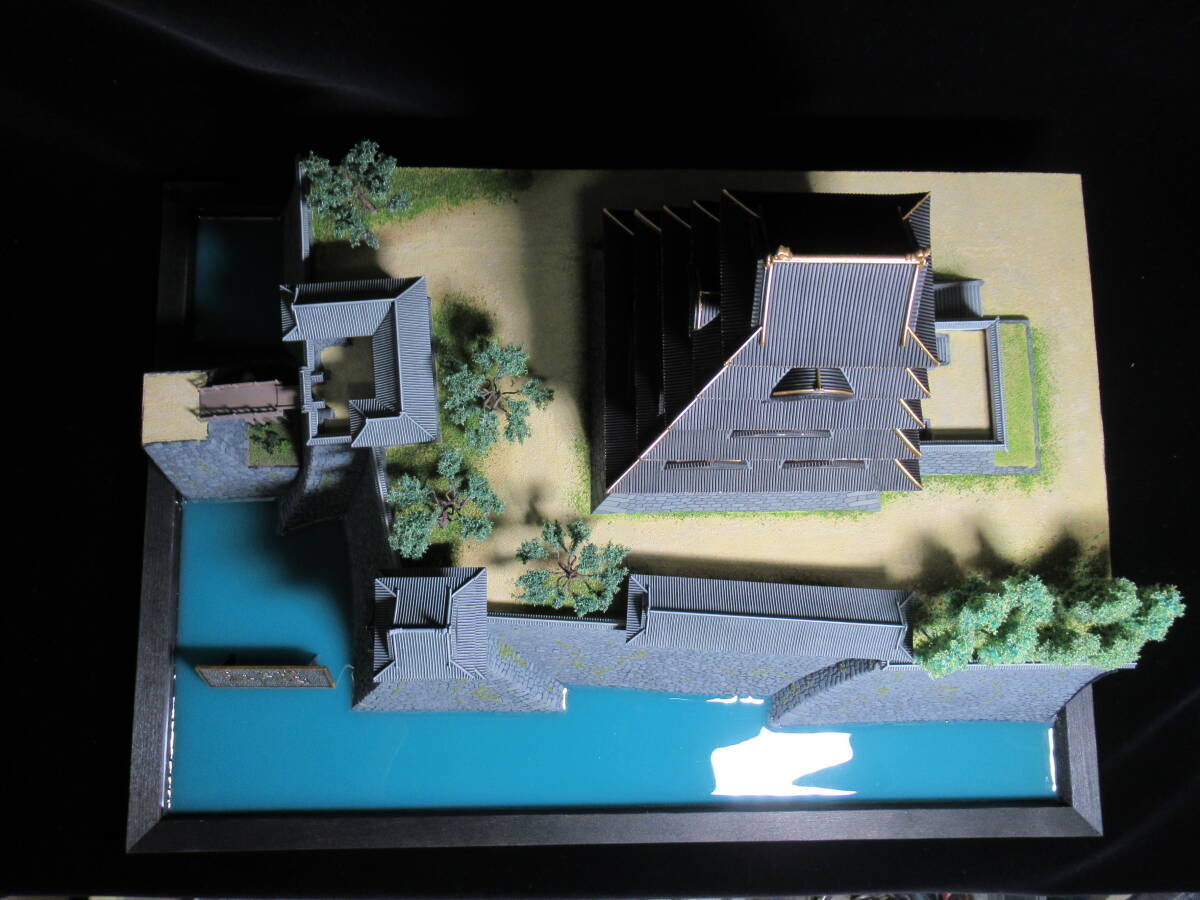 ・北桔橋門の橋脚と跳ね橋部分、門までの石垣通路は、古写真を参考に自作しました。また、画像では分かりづらいですが櫓門の門扉と門扉上の庇がキットでは省略されていたので追加しました。