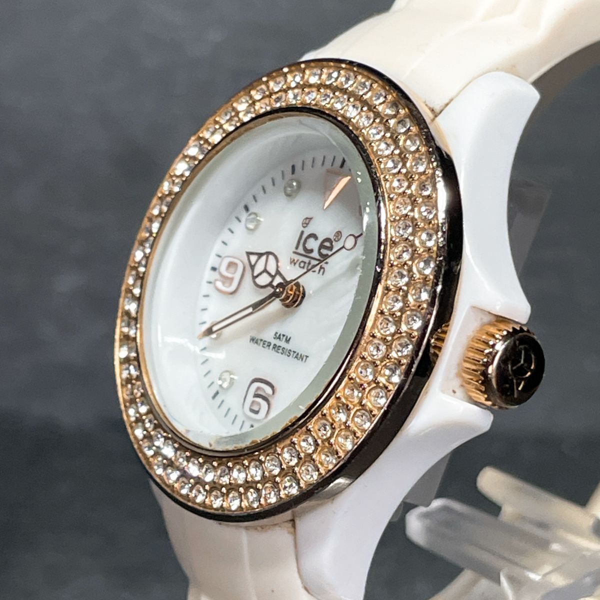 美品 ice-watch アイスウォッチ 腕時計 アナログ クオーツ 3針 ホワイト文字盤 ラバーバンド ゴールド 新品電池交換済み 動作確認済み