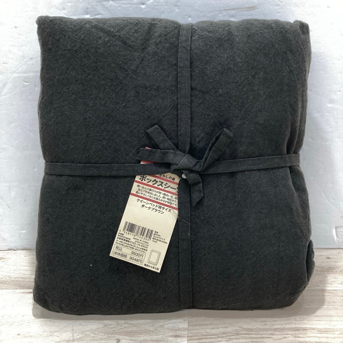 未使用品 無印良品 洗いざらしの麻 ボックスシーツ クイーンベッド用 ダークブラウン[D7069]
