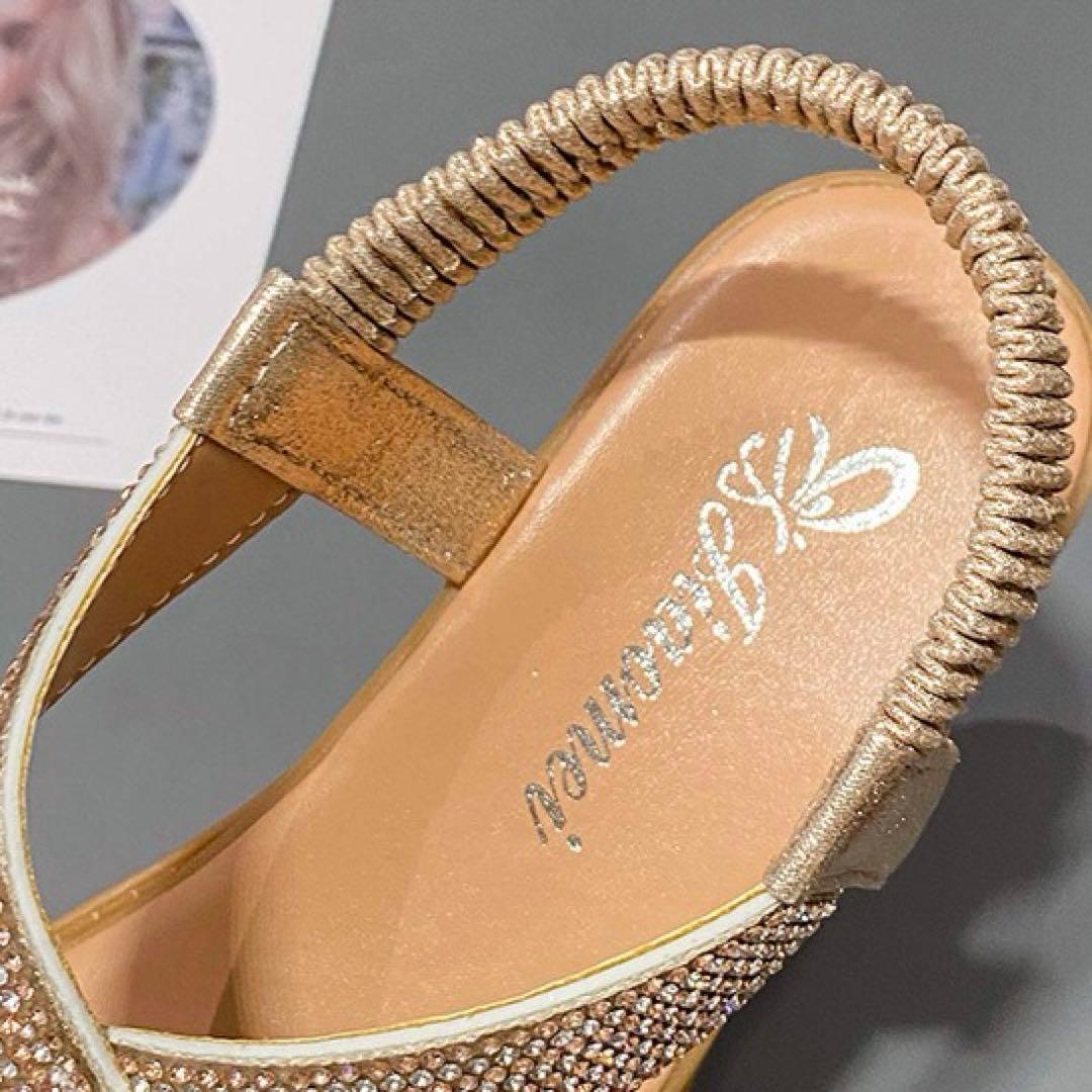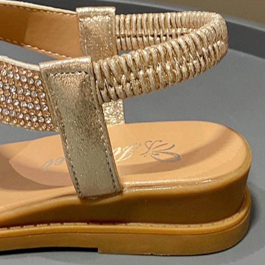 グリッターと編み込みデザインが目を惹く、夏にぴったりのレディースサンダル