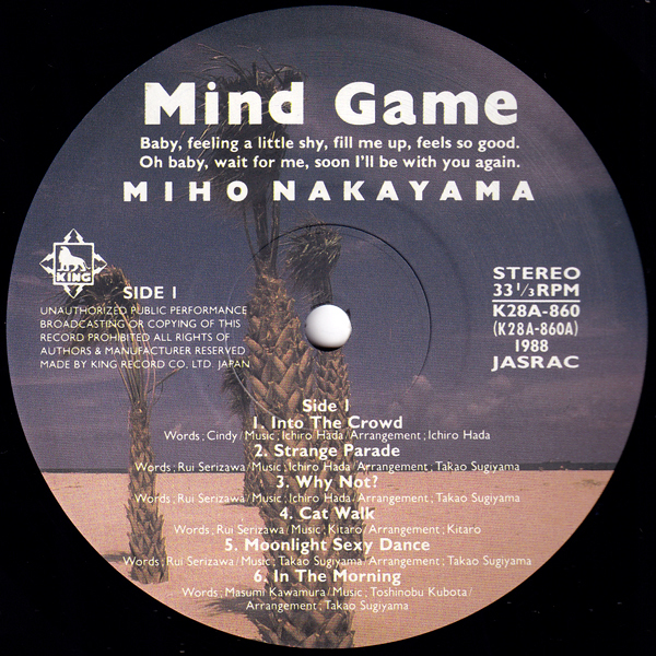 Product name: ピンナップ帯付LP☆ 中山美穂 Mind Game(1988年 KING K28A 860)MIHO NAKAYAMA【Robert Blue】アマゾンズ シンディ