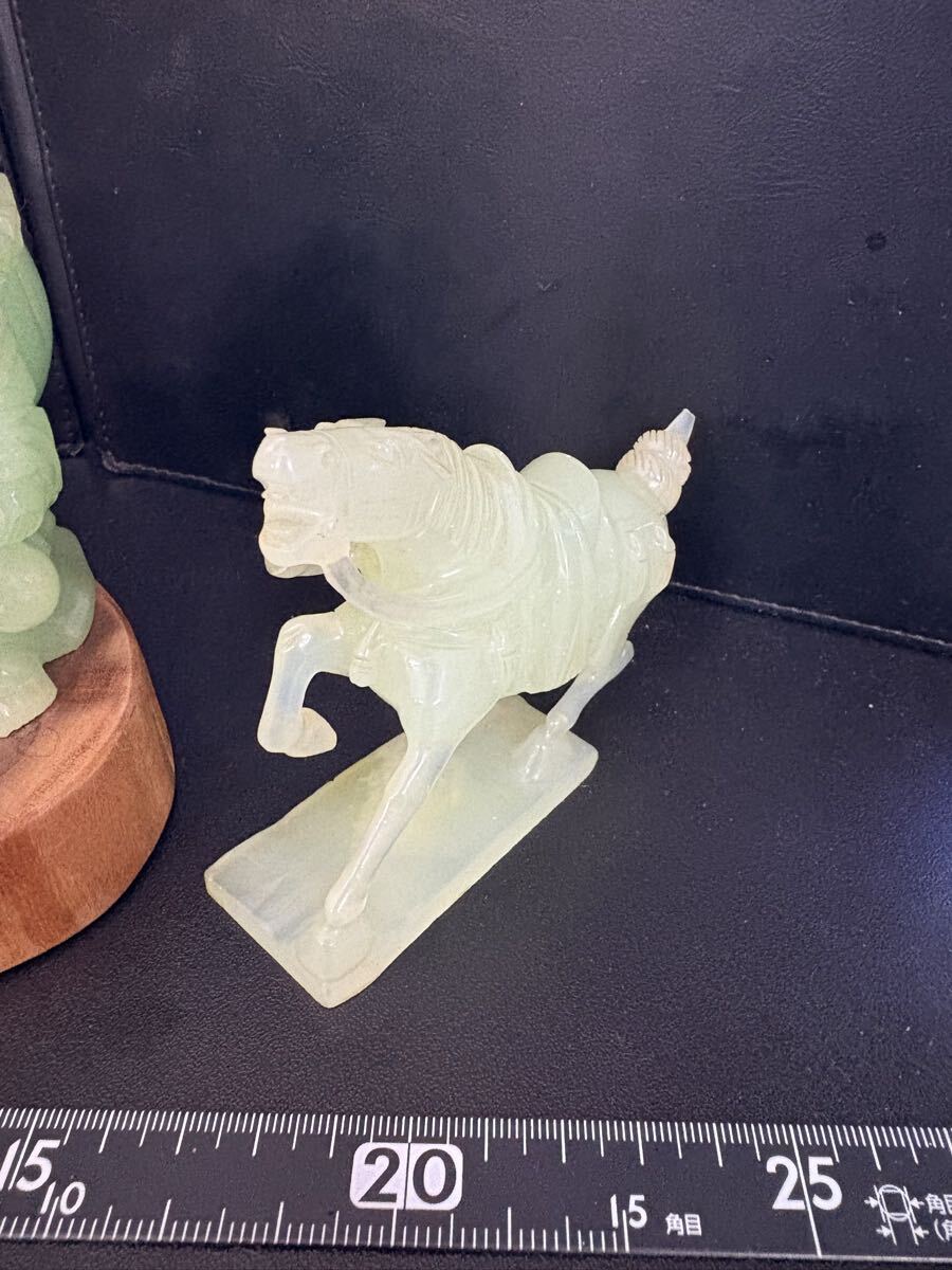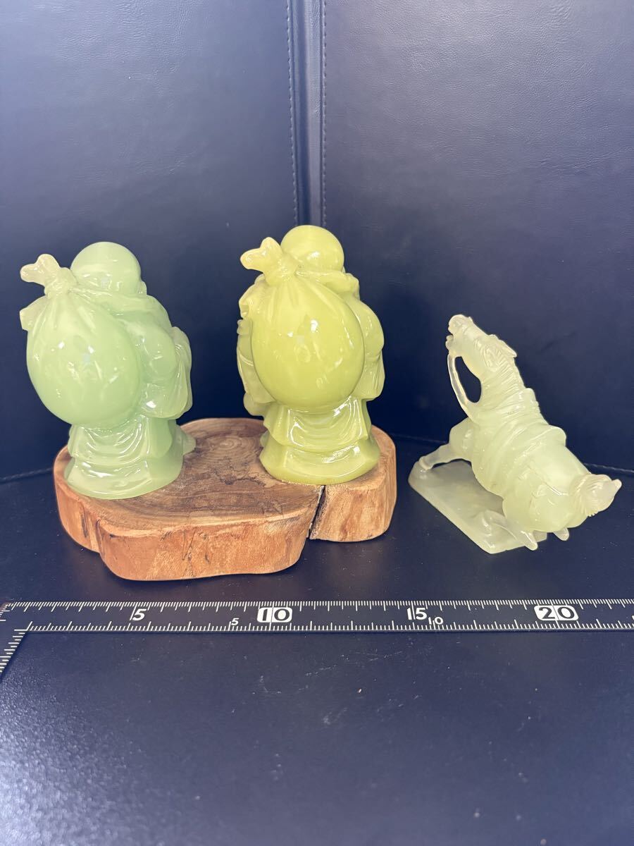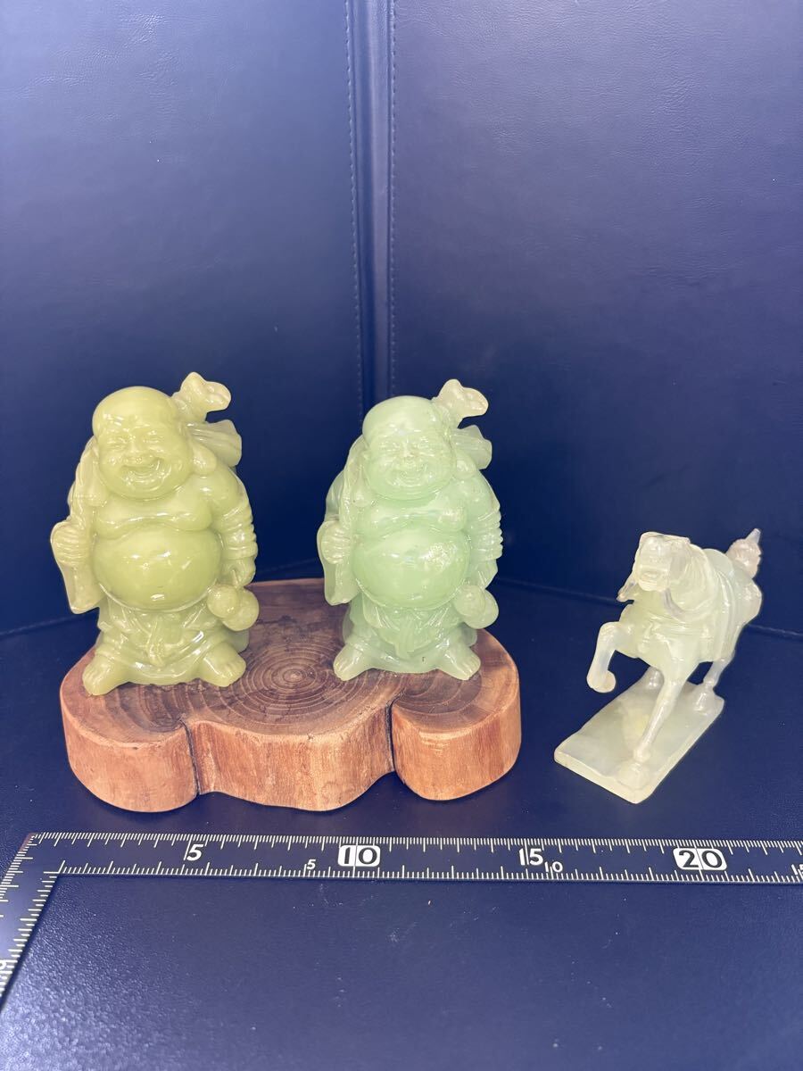 Product name: 翡翠風 石彫 置物 布袋尊 馬 台座付 縁起物 大黒様 恵比寿様 骨董 まとめて! 中国美術