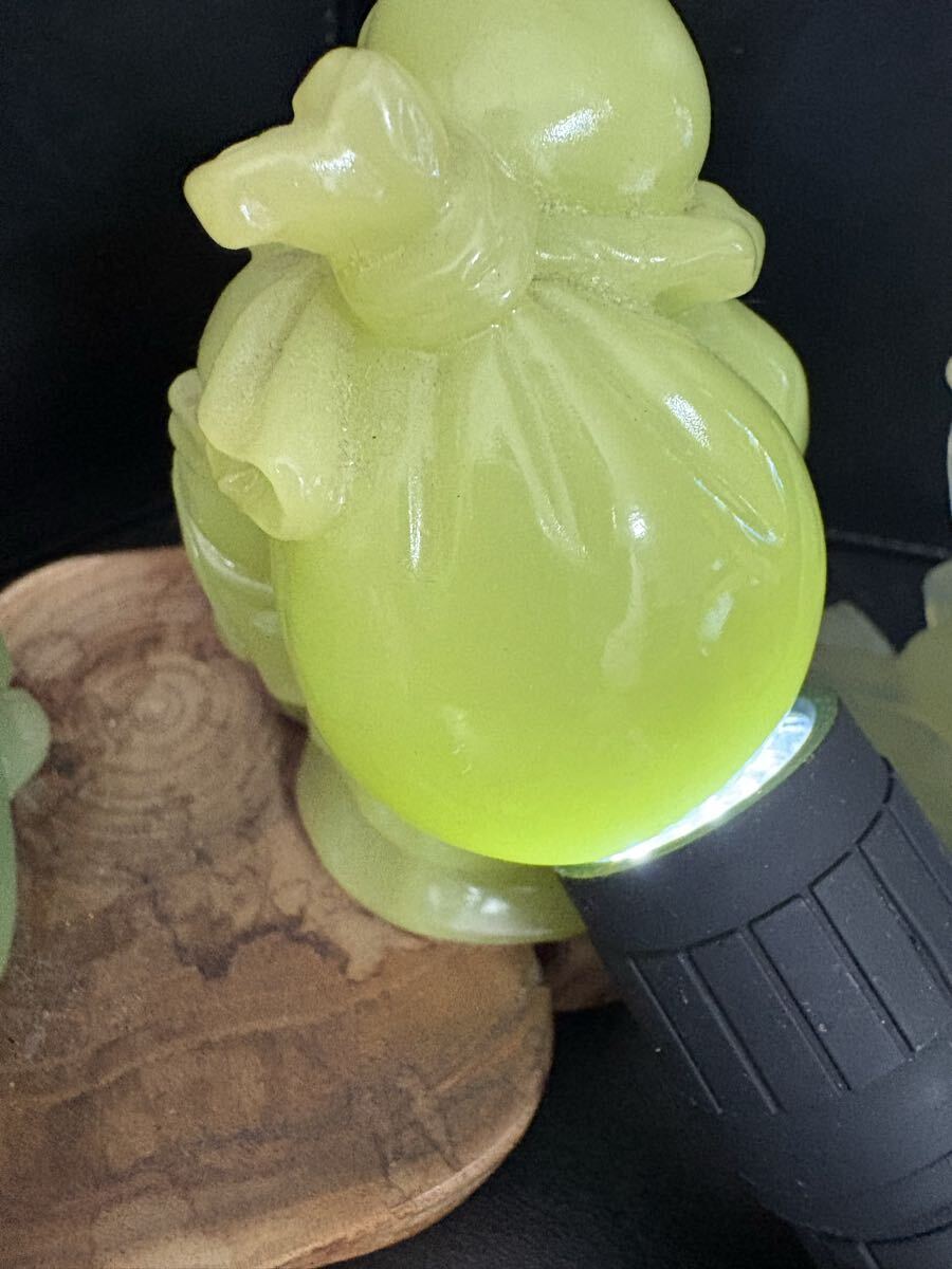 翡翠風 石彫 置物 布袋尊 馬 台座付 縁起物 大黒様 恵比寿様 骨董 まとめて! 中国美術