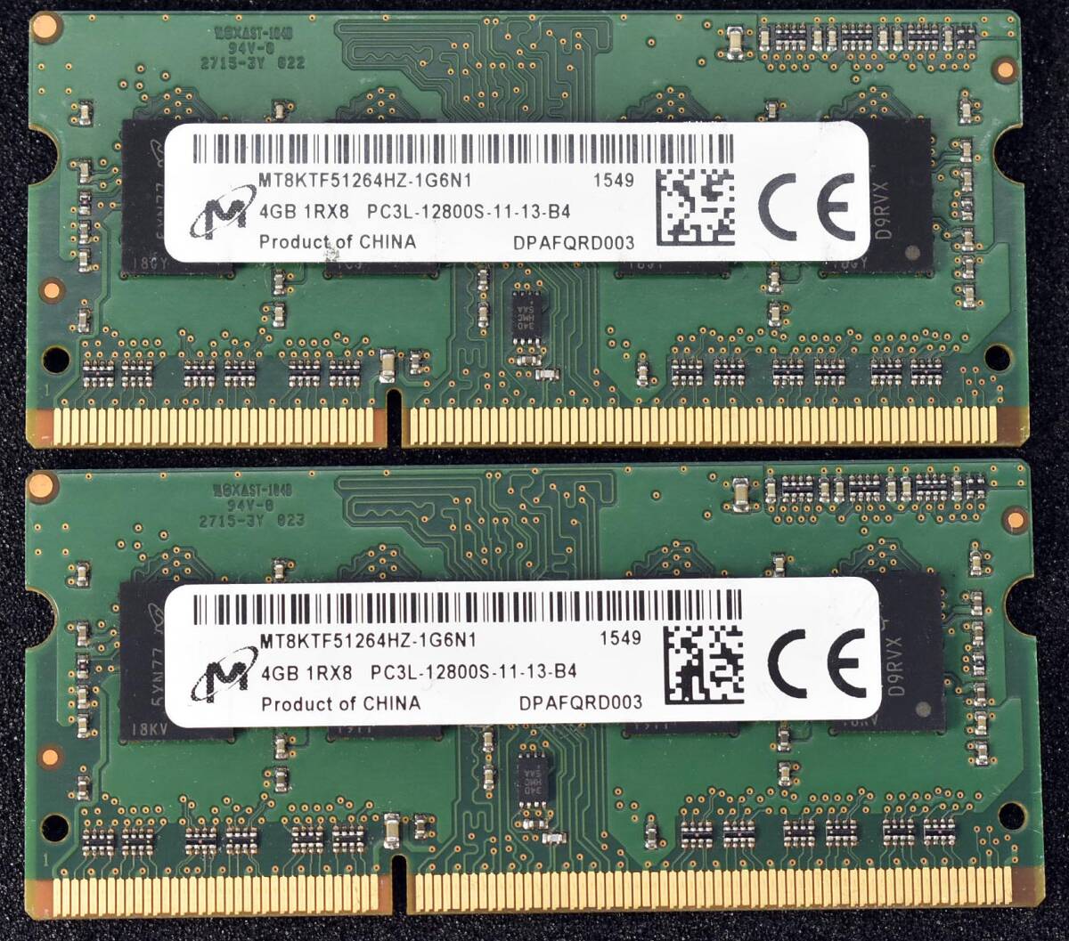 4GB 2枚組 (合計 8GB) PC3L-12800S DDR3-1600 S.O.DIMM 204pin 1Rx8 MT micron (動作確認済) (管:EN68 x2s