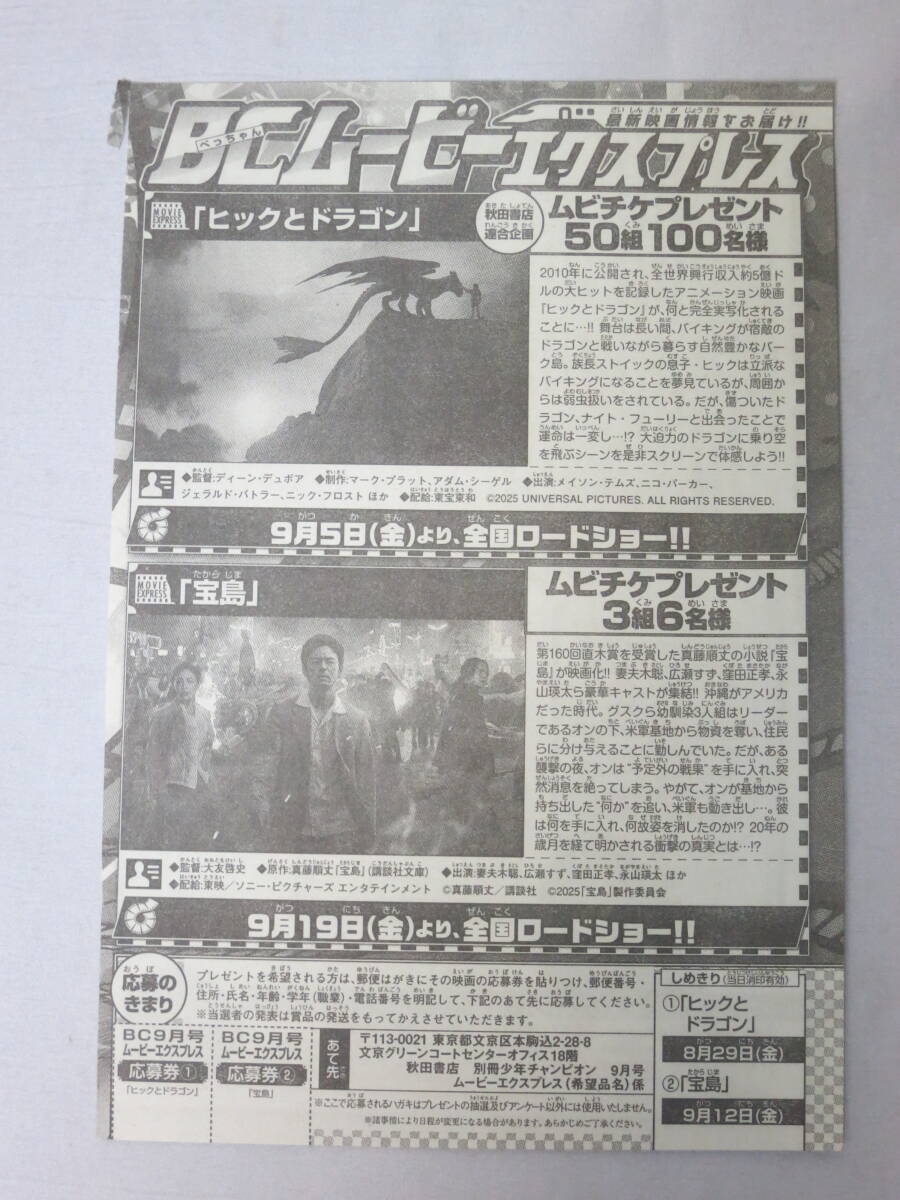 BCムービーエクスプレス ムビチケ プレゼント応募券 別冊少年チャンピオン9月号