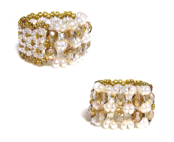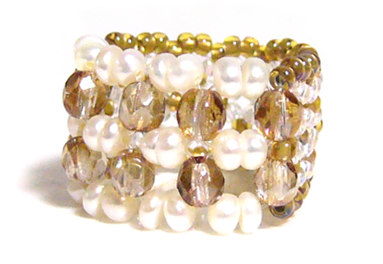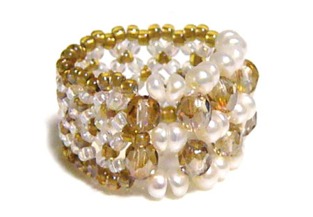 透明なテグス糸で編んだビーズのリングです。