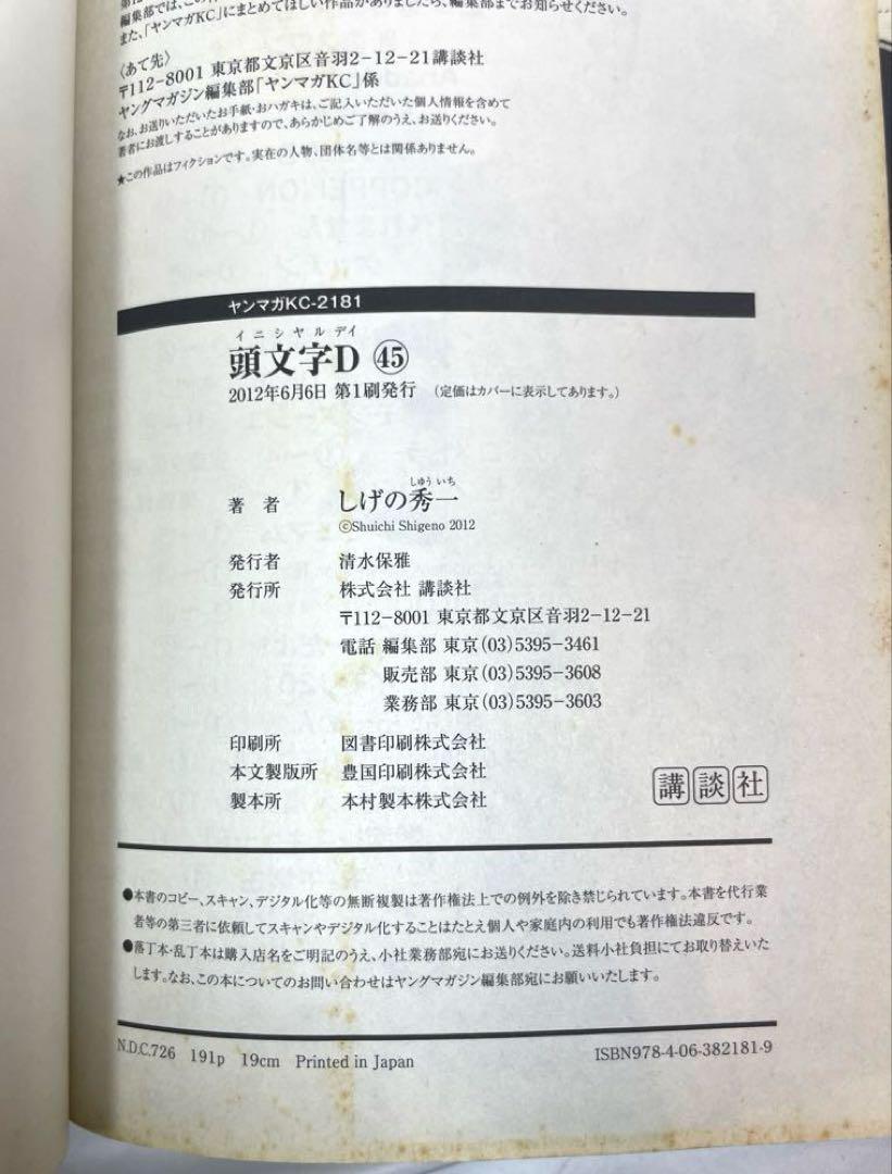 しげの秀一先生による伝説的コミック『頭文字D』の貴重な初版・帯付きセットです!