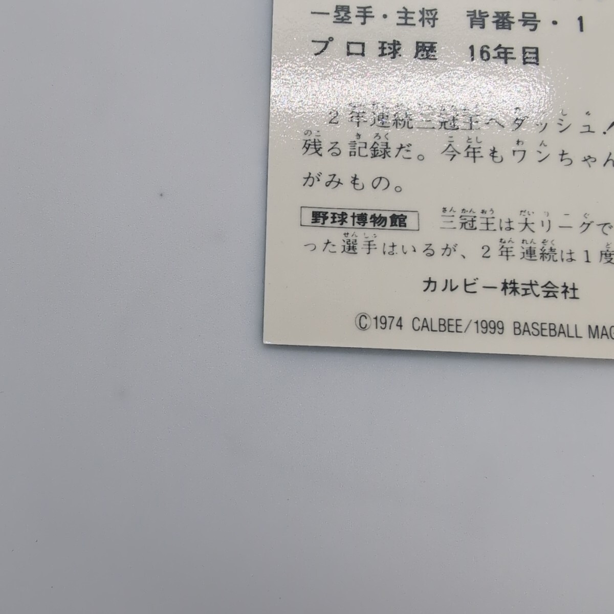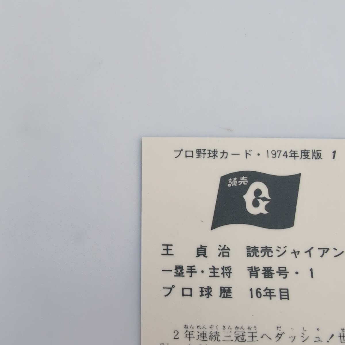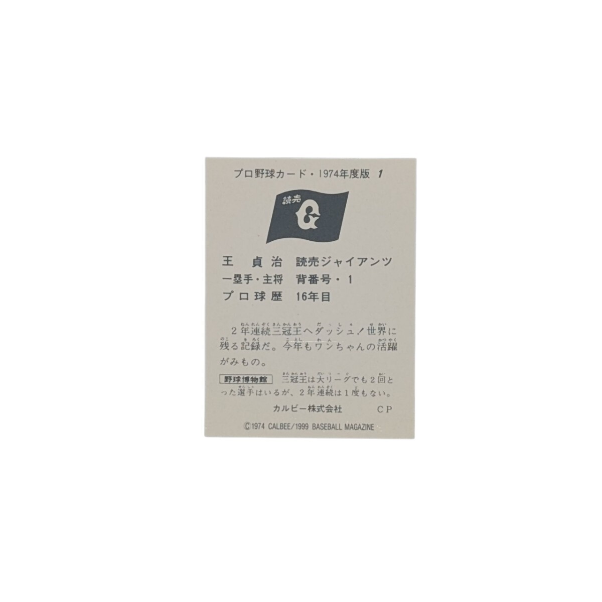 【美品】1974年 カルビー 1999年 ベースボールマガジン プロ野球カード 野球チップス 復刻版カード 1974年 No.1 王貞治 読売ジャイアンツ