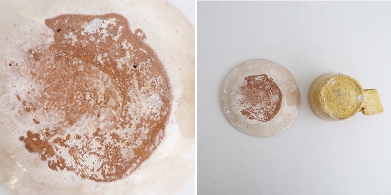 お譲りいただいたお品物で、カップの全体所々に着色がございます。