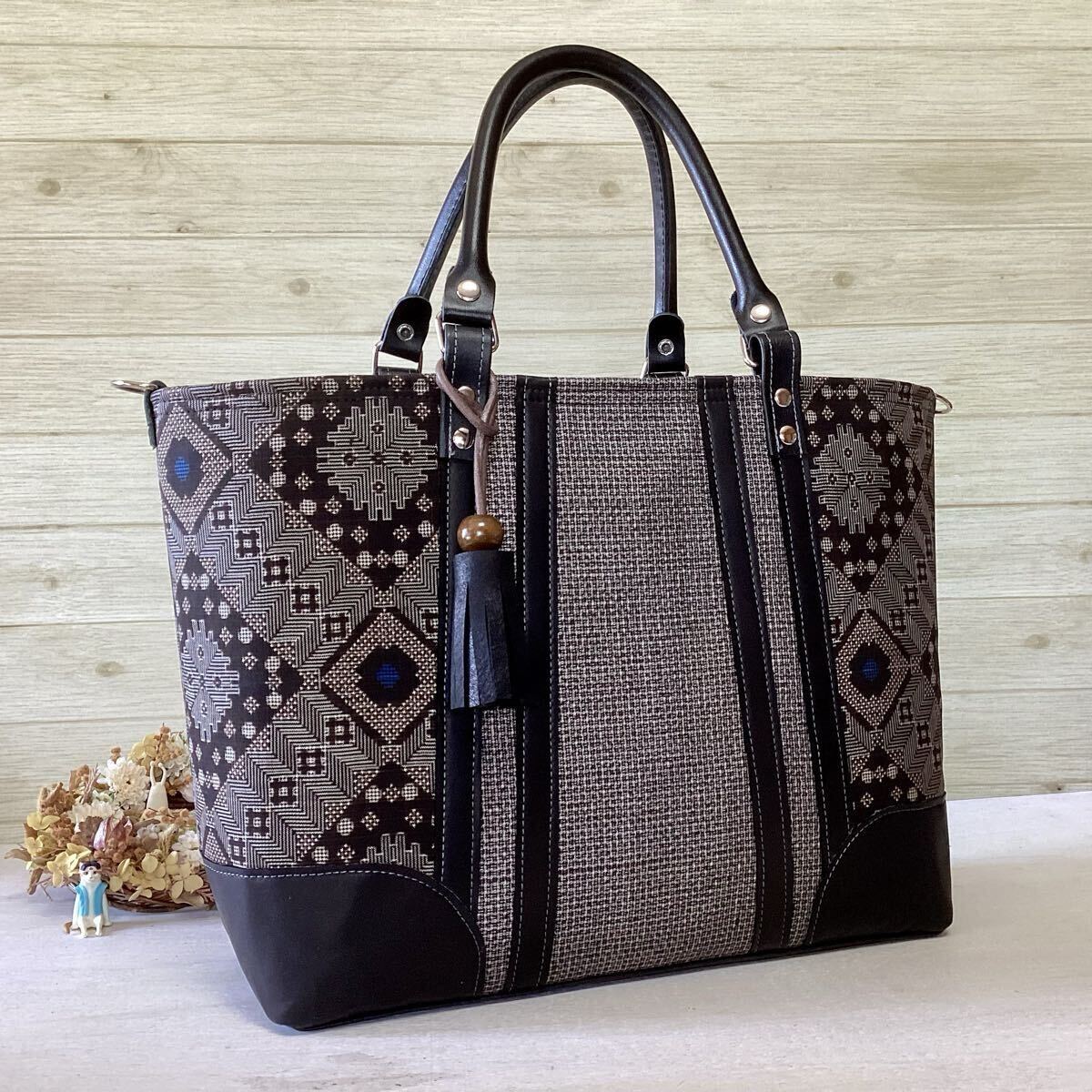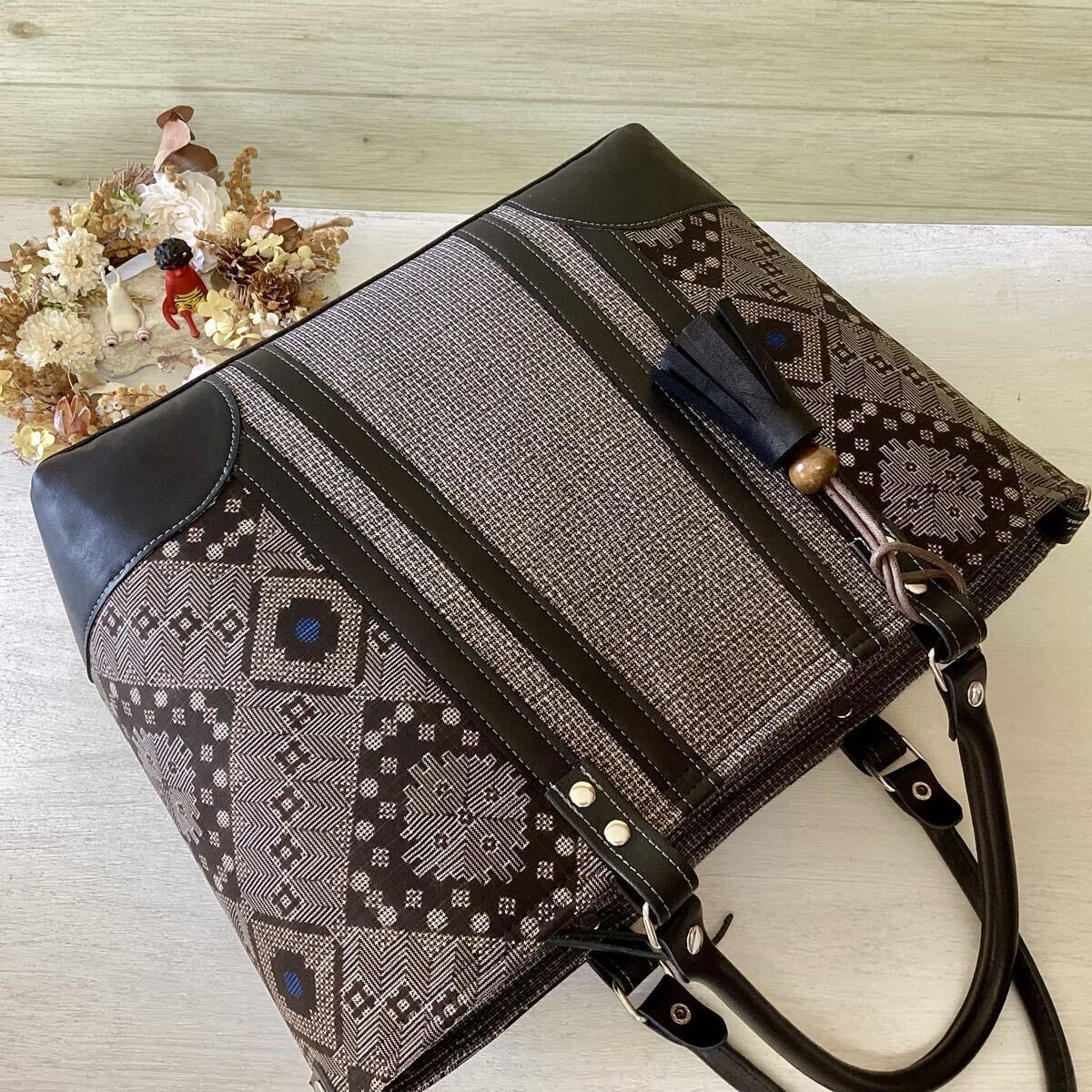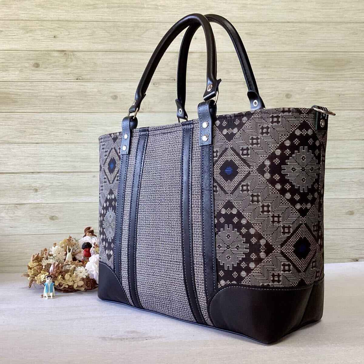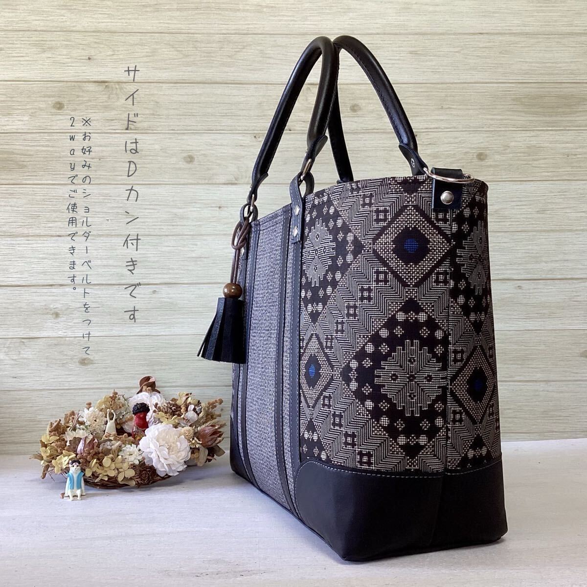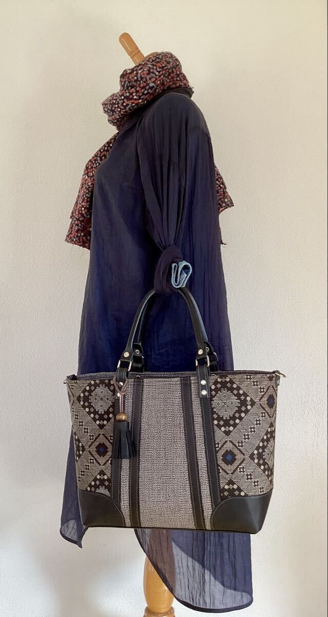 Product name: 龍郷 本場大島紬 × 本革 着物リメイク A4対応 トートバッグ 和装バッグ 手提げ ハンドメイド ショルダー 泥大島紬 アンティーク 古布