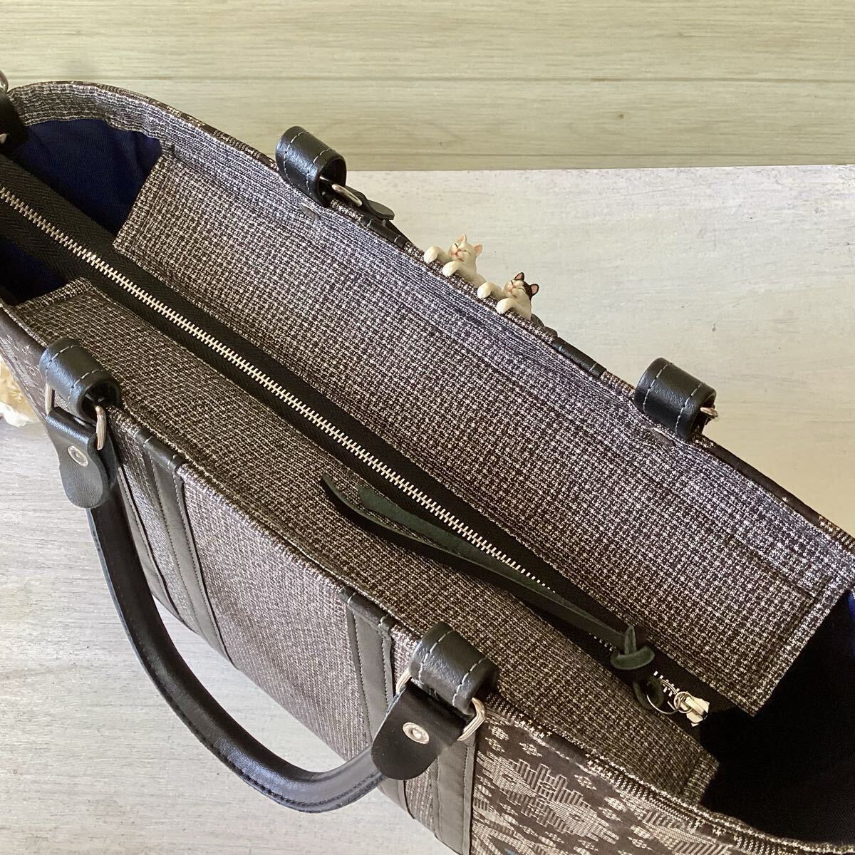 ★龍郷などの泥大島紬のお着物をリメイクした、ファスナー蓋付きのシンプルなトートバッグです。