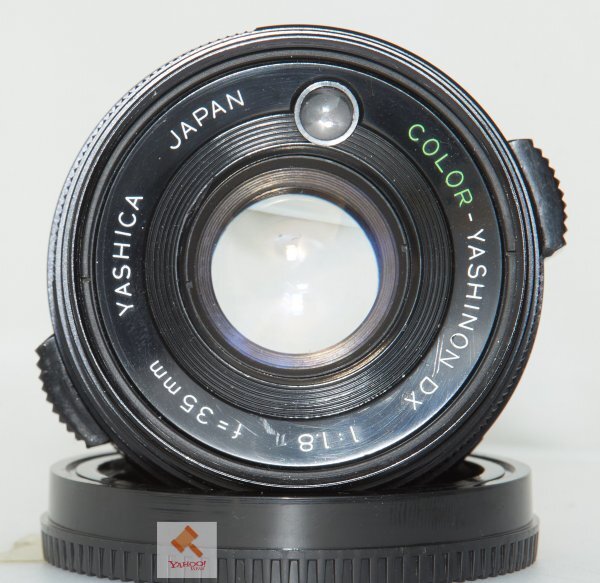 レンズは富岡光学の「COLOR-YAHINON DX 1:1.8 f=35mm YASHICA JAPAN」(4群6枚構成、1.8-16)です。