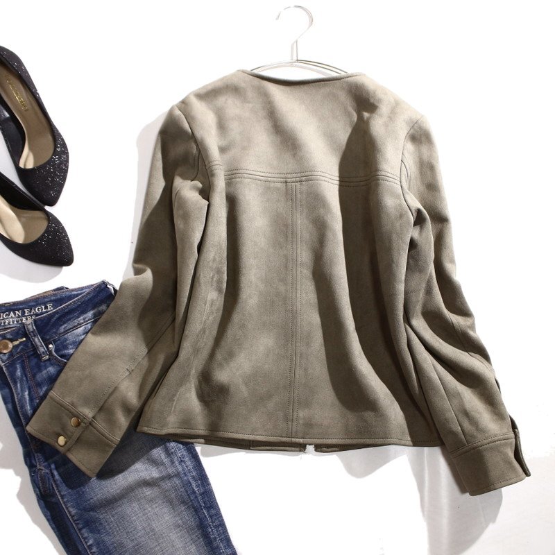 Product name: 美品 ロペ ピクニック ROPE' PICNIC 秋 冬 スエードライク ノーカラー レザージャケット 9号 38 カーキ グレー ノーカラージャケット 定番