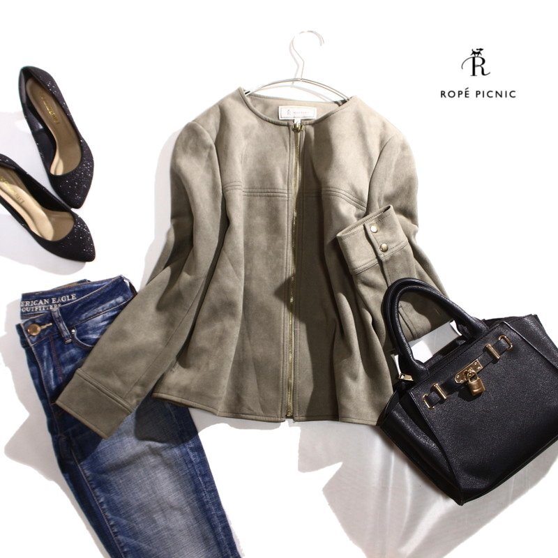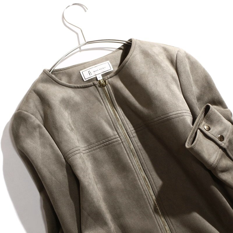 美品 ロペ ピクニック ROPE' PICNIC 秋 冬 スエードライク ノーカラー レザージャケット 9号 38 カーキ グレー ノーカラージャケット 定番
