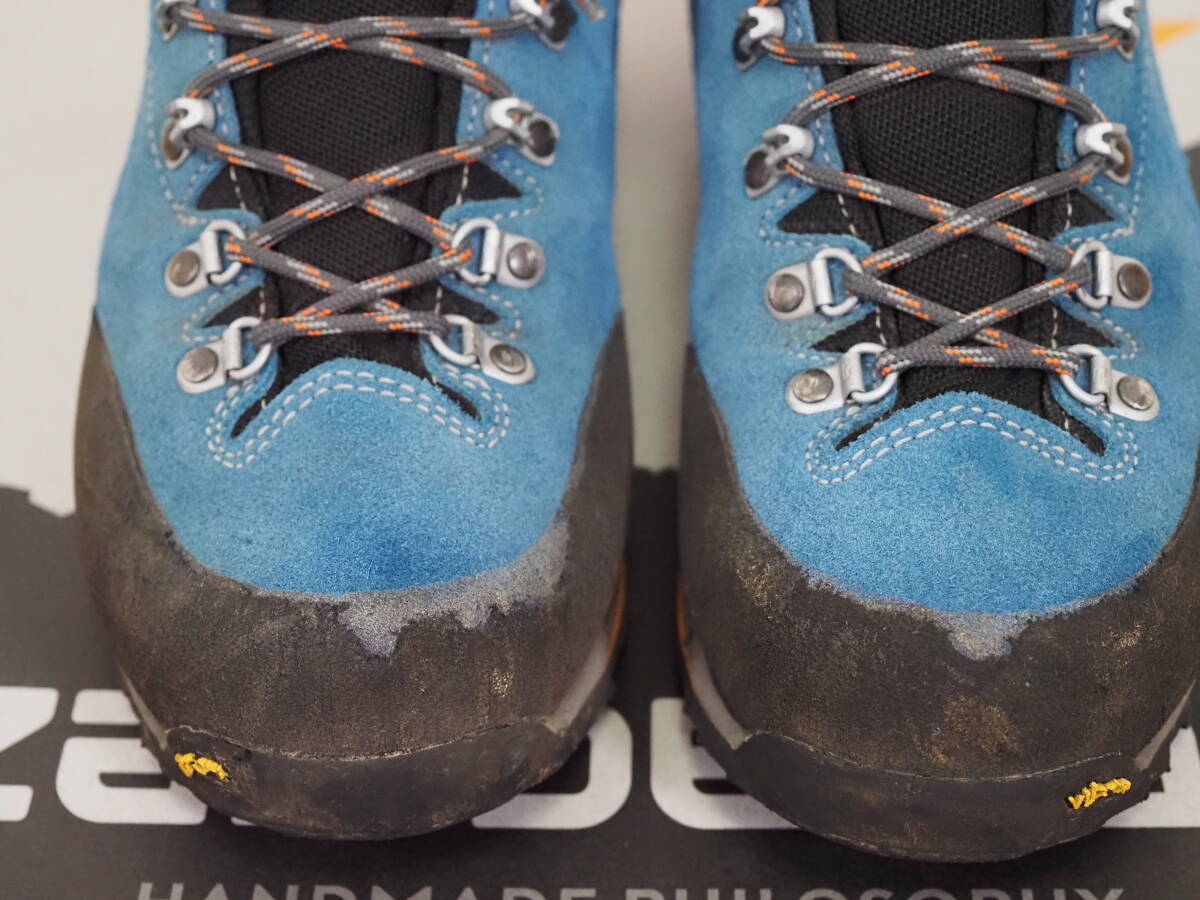 アッパーは防水加工の施されたスエードとコーデュラナイロン素材、ライニングは防水透湿性に優れたゴアテックスを使用しています。ソールはビブラム社製、インソールは外して別のものを使用していたのでほぼ未使用の状態です。