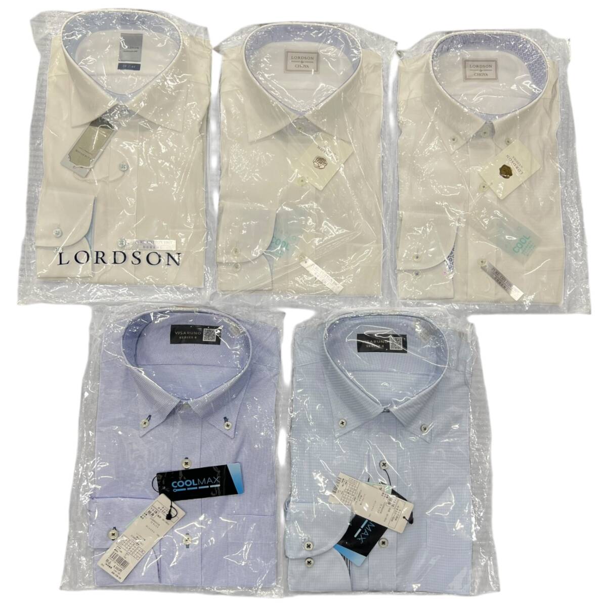 ◎未使用品◎LORDSON ロードソン メンズ ワークシャツ 長袖 ホワイト 39/82 ブルー 39 Yシャツ タグ付 未開封 5着 まとめ coI5045COA