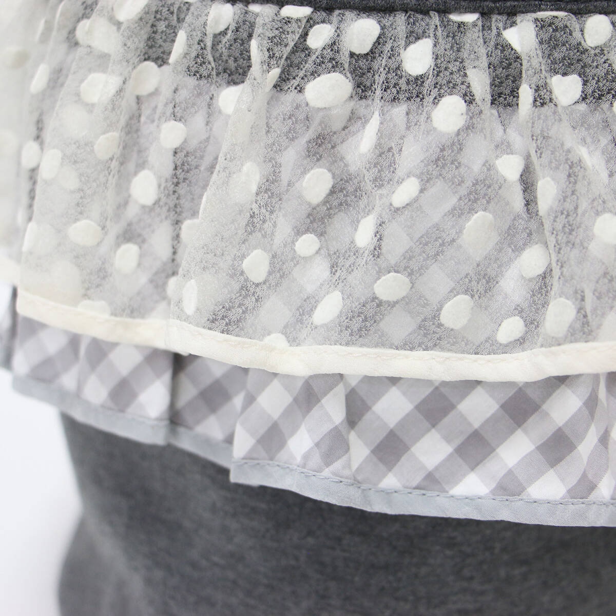 setsuko sagettaire ピクニック バッグ グレー | フロッキー ドット ギンガムチェック バケツバッグ | picnic | ハンドバッグ チュール