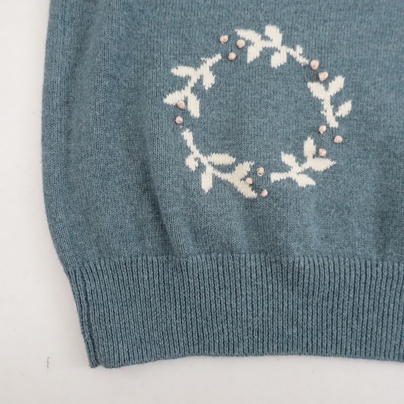 Product name: サリースコット Sally Scott *コットン混ニットプルオーバー*L長袖セーター綿毛グレーブルー刺しゅう(4-2509-44)【11J52】