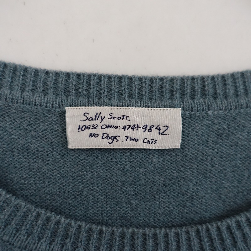 サリースコット Sally Scott *コットン混ニットプルオーバー*L長袖セーター綿毛グレーブルー刺しゅう(4-2509-44)【11J52】