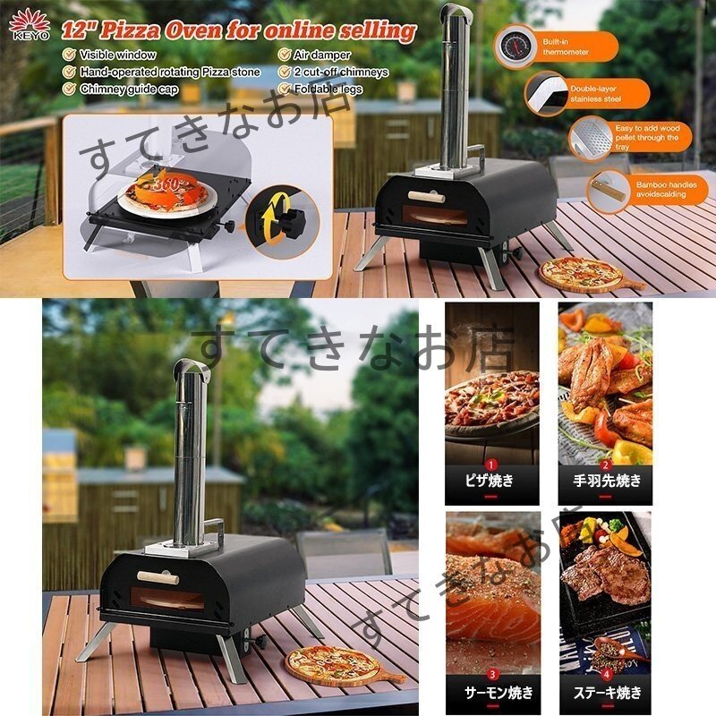 ポータブル ピザ窯 引き出し式ピザ窯 12インチ 温度計付き 折りたたみな足 ピザストーン 組立簡単 ピザオーブン 薪ストーブ アウトドア