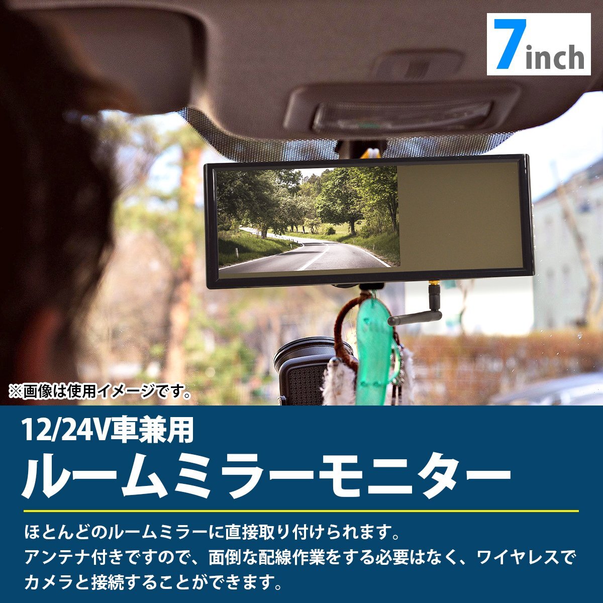 『12v/24v 7インチ』ルームミラーモニター ワイヤレス 赤外線 暗視 配線不要 車 軽トラ トラック カメラ
