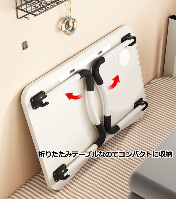 折りたたみテーブルなのでコンパクトに収納できます。使用しない時に簡単収納可能。持ち運びも便利なテーブルです。