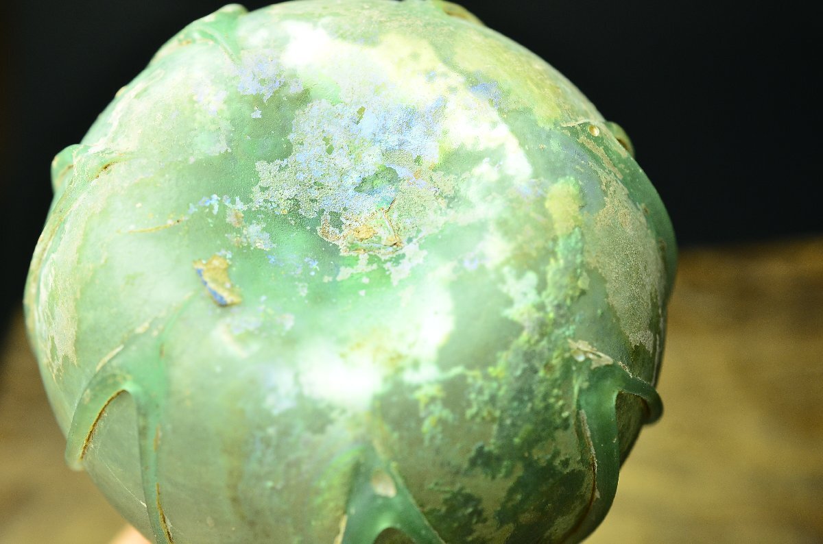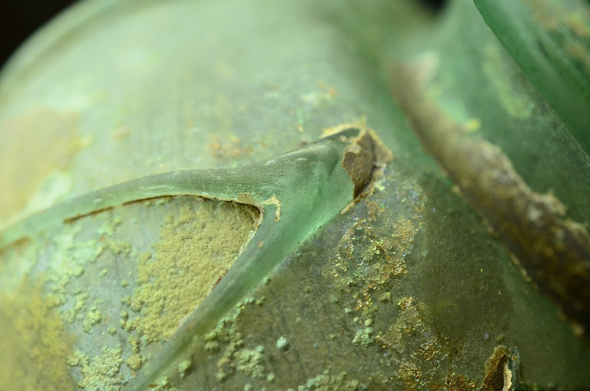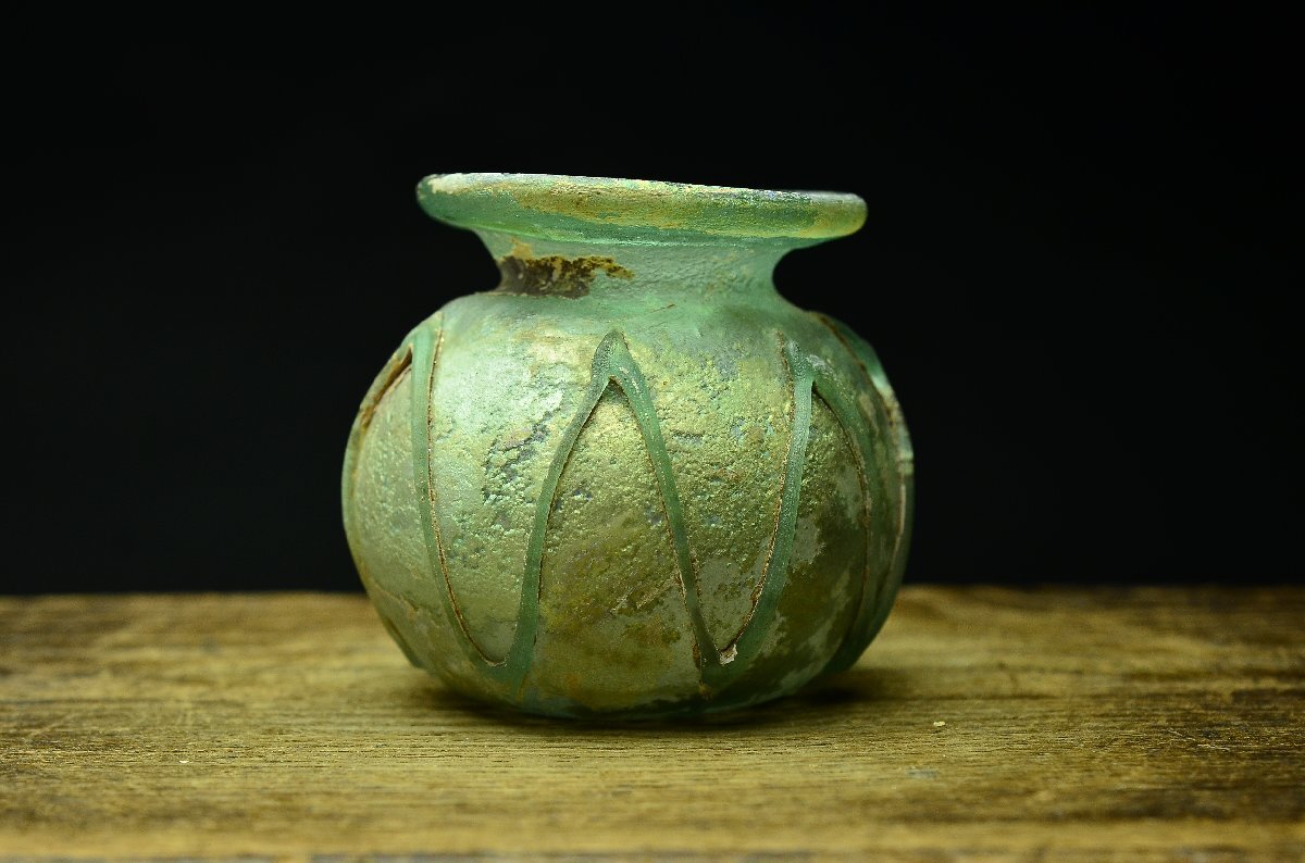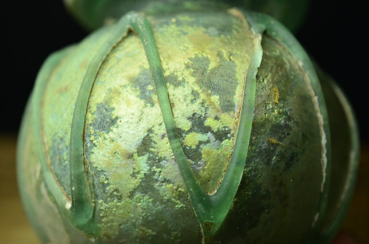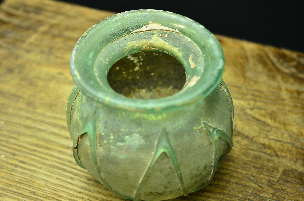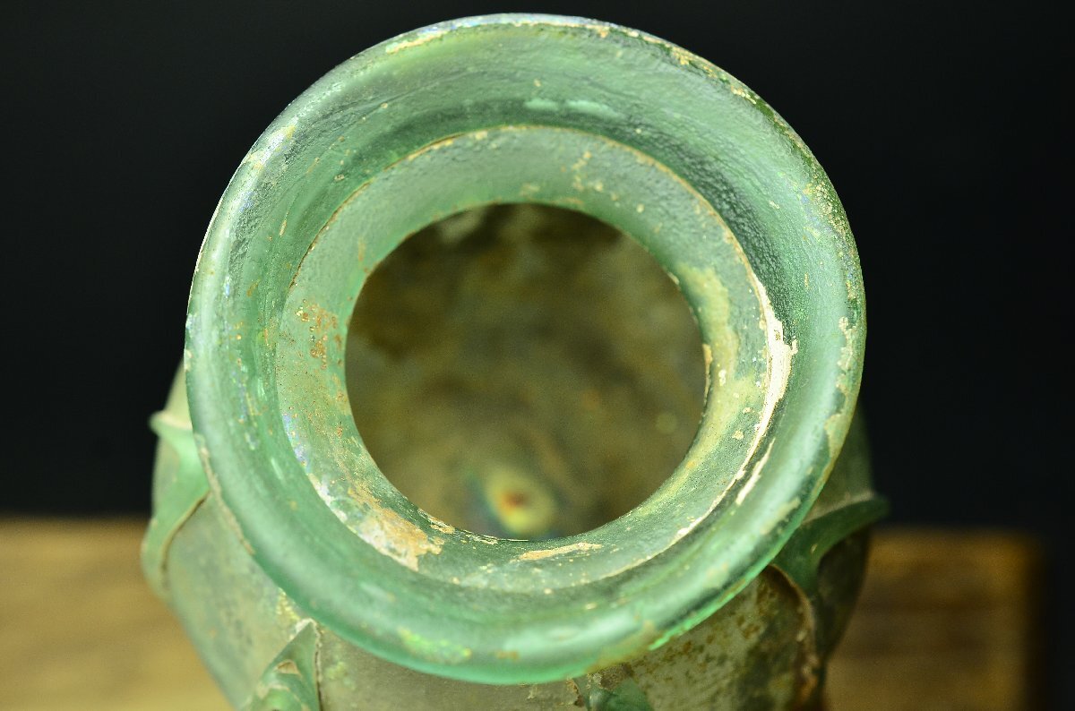 【YB】1~2世紀 シリア 古代ローマングラス銀化網模様 広口瓶・水注 ★古代オリエント古美術出土24Y1118