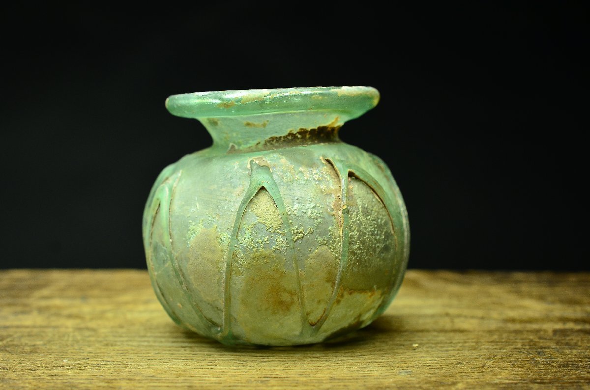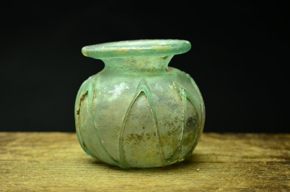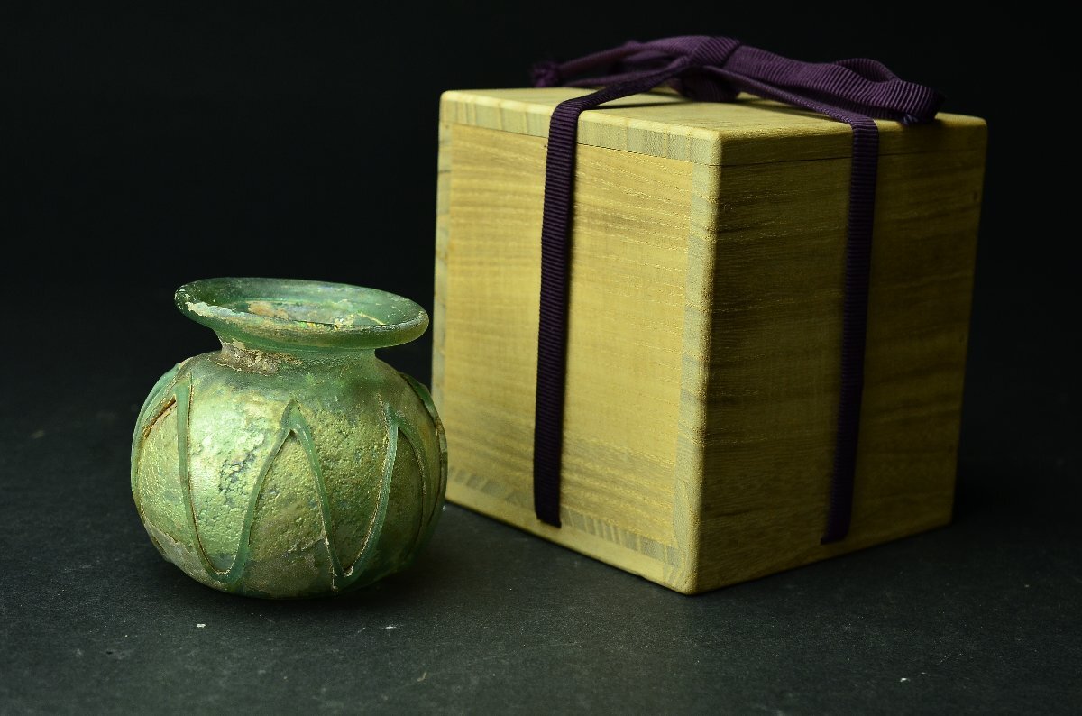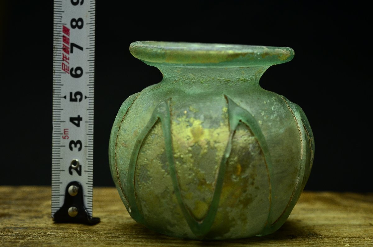 Product name: 【YB】1~2世紀 シリア 古代ローマングラス銀化網模様 広口瓶・水注 ★古代オリエント古美術出土24Y1118