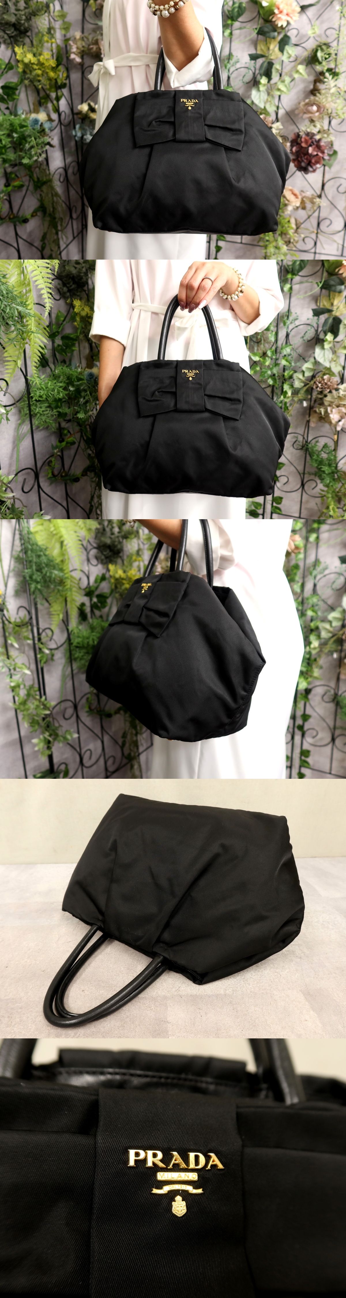 Product name: ●超美品●PRADA プラダ●ロゴ金具●リボンモチーフ●ポコノ ナイロン カーフ レザー 本革●トート バッグ●黒●イタリア製●B5●Js61326
