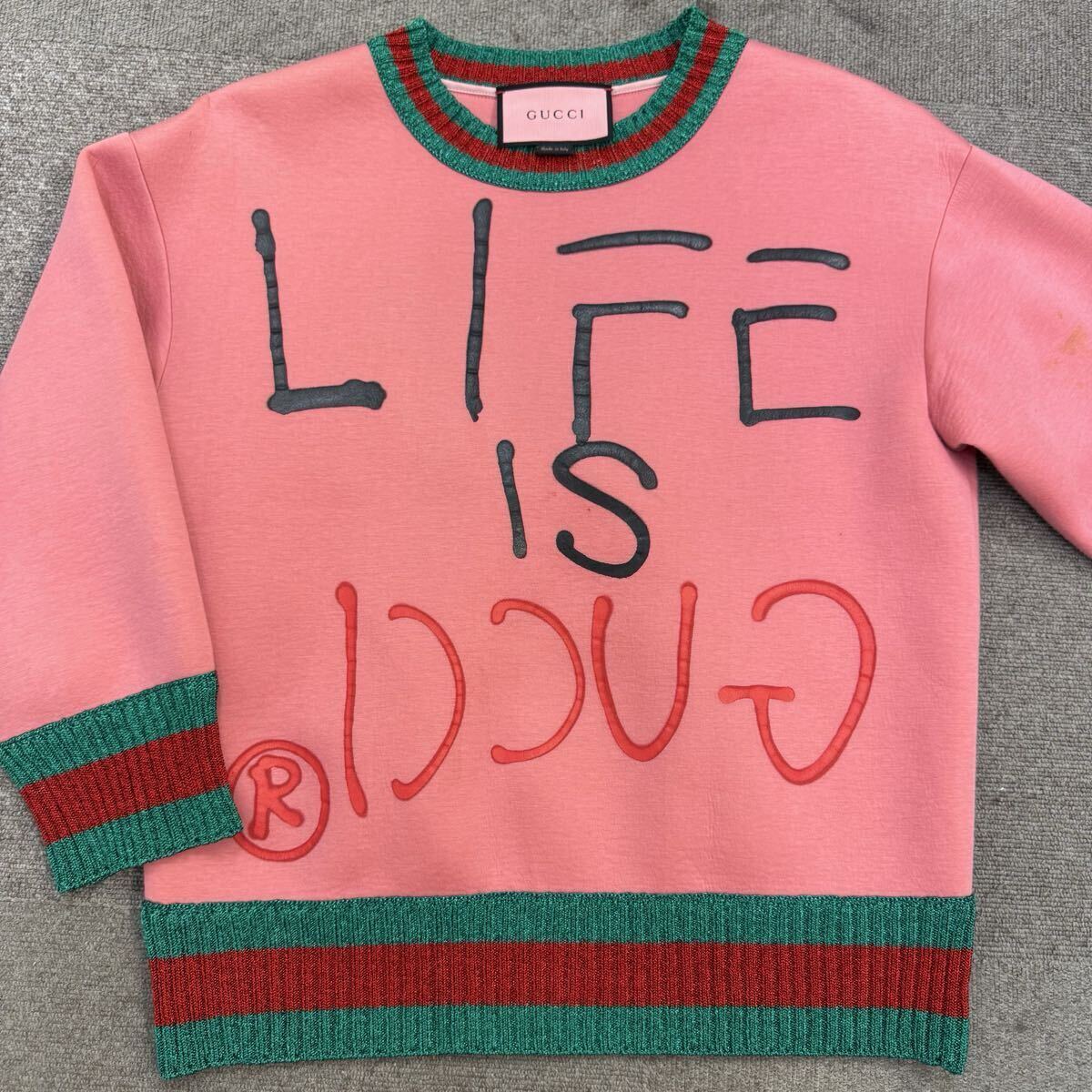 Product name: 15『極美品・現行タグ』 GUCCI グッチ レディース ニット スウェット LIFE IS GUCCI ボンディング加工 ピンク Sサイズ相当