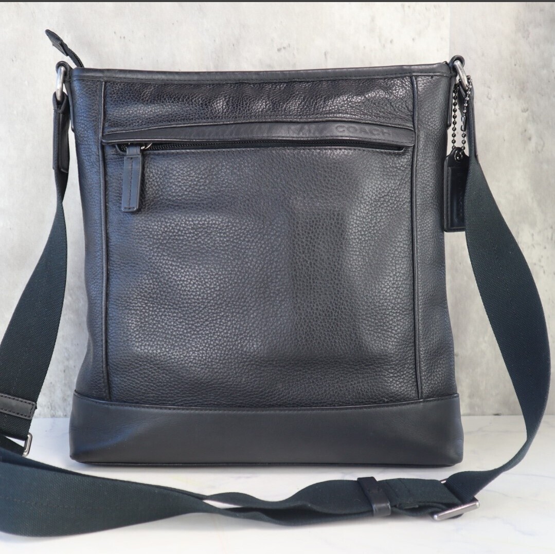 美品 コーチ COACH メンズ サコッシュ ショルダーバッグ メッセンジャーバッグ シボ革 黒 ブラック ビジネス 斜め掛け クロスボディ
