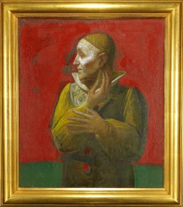 Product name: 〔聖〕真作 増田常徳 『 道化師 赤い背景のプロフィール 』 油彩 10号 キャンバス 豪華額装 【上野の森美術館所蔵画家 長崎県 五島出身】