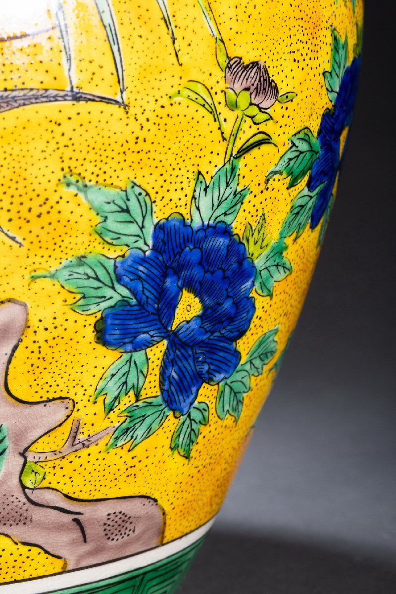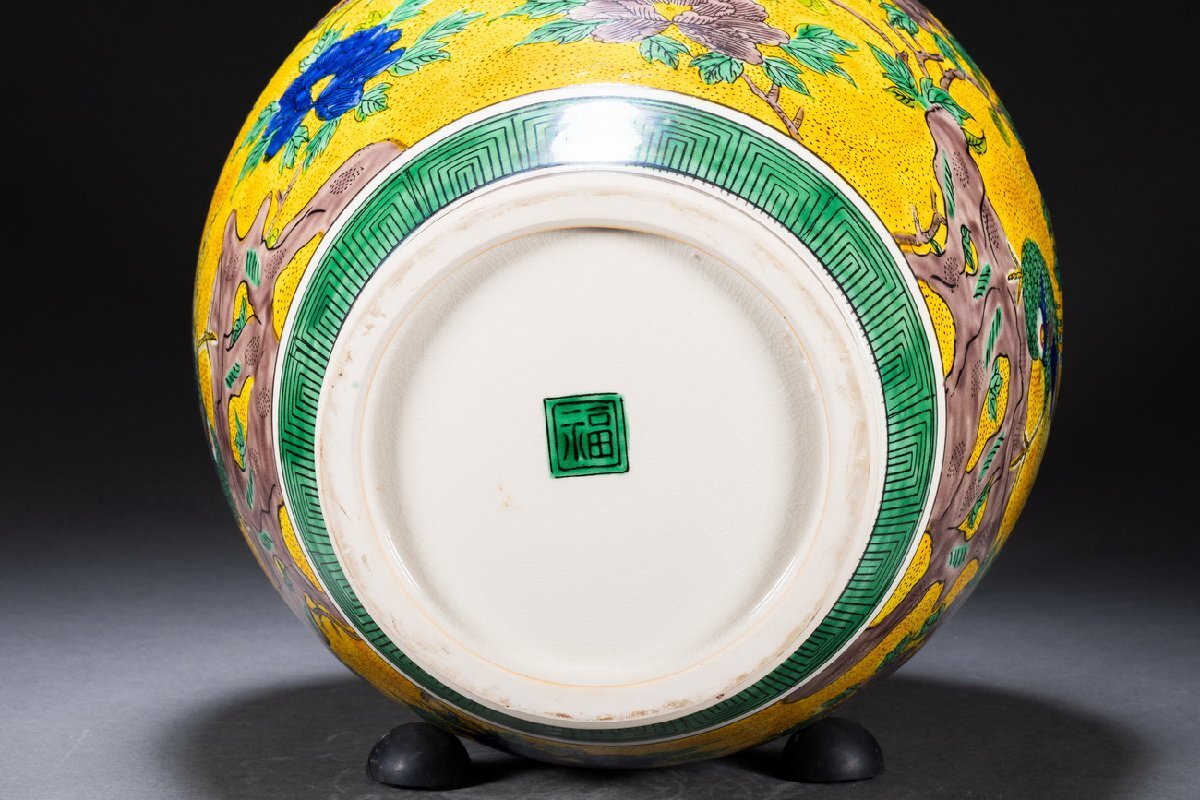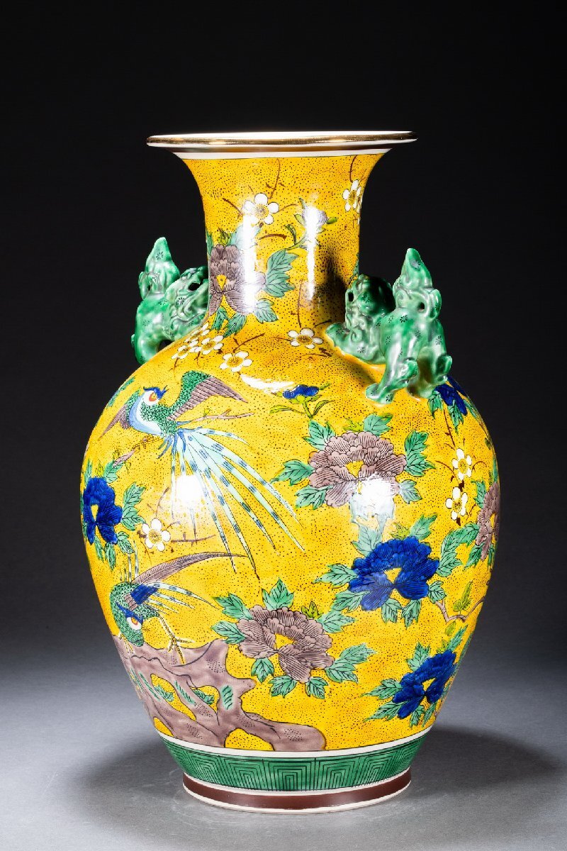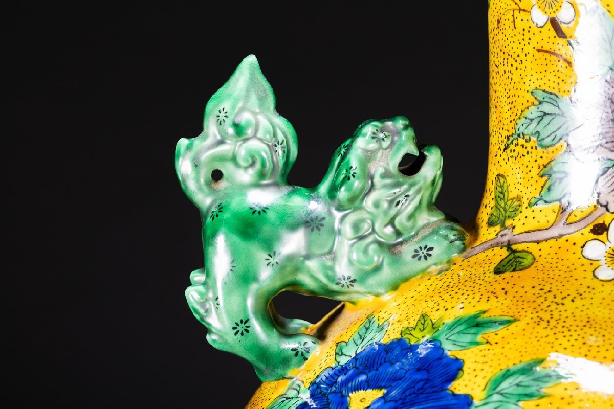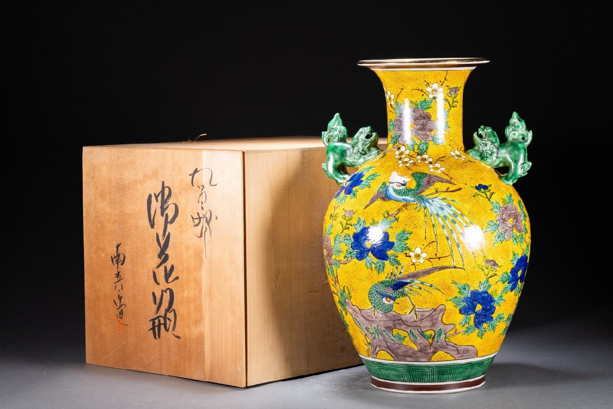 Product name: 【雲錦】九谷焼 南春造 青手 巨大花鳥図双唐獅子耳花瓶 55CM希少 真作保証 美術品WK9-141L