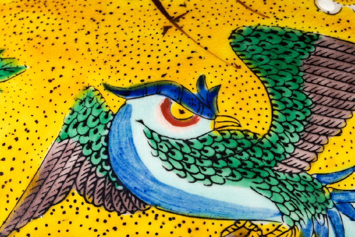 【雲錦】九谷焼 南春造 青手 巨大花鳥図双唐獅子耳花瓶 55CM希少 真作保証 美術品WK9-141L