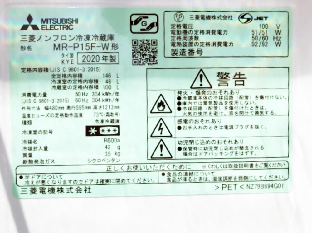 Product name: 送料無料★2020年製★極上超美品 中古★三菱 146L 耐熱フルフラットトップテーブル!!大容量ドアポケット!2ドア冷蔵庫【MR-P15F-W】FNNN