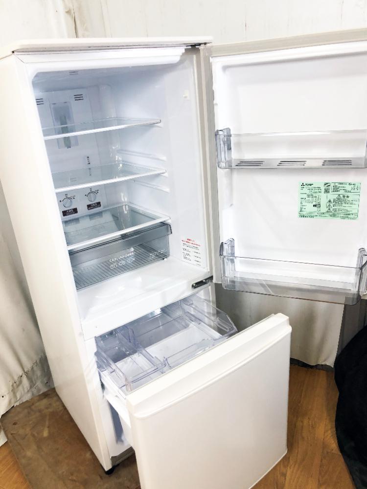 送料無料★2020年製★極上超美品 中古★三菱 146L 耐熱フルフラットトップテーブル!!大容量ドアポケット!2ドア冷蔵庫【MR-P15F-W】FNNN
