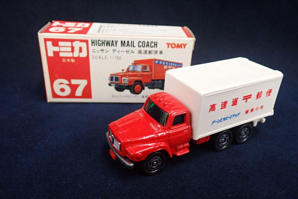 ■ミニカー100 ニッサン ディーゼル 高速郵便車■トミカ/トミー/NO.67/NISSAN/1/102/赤箱/日本製